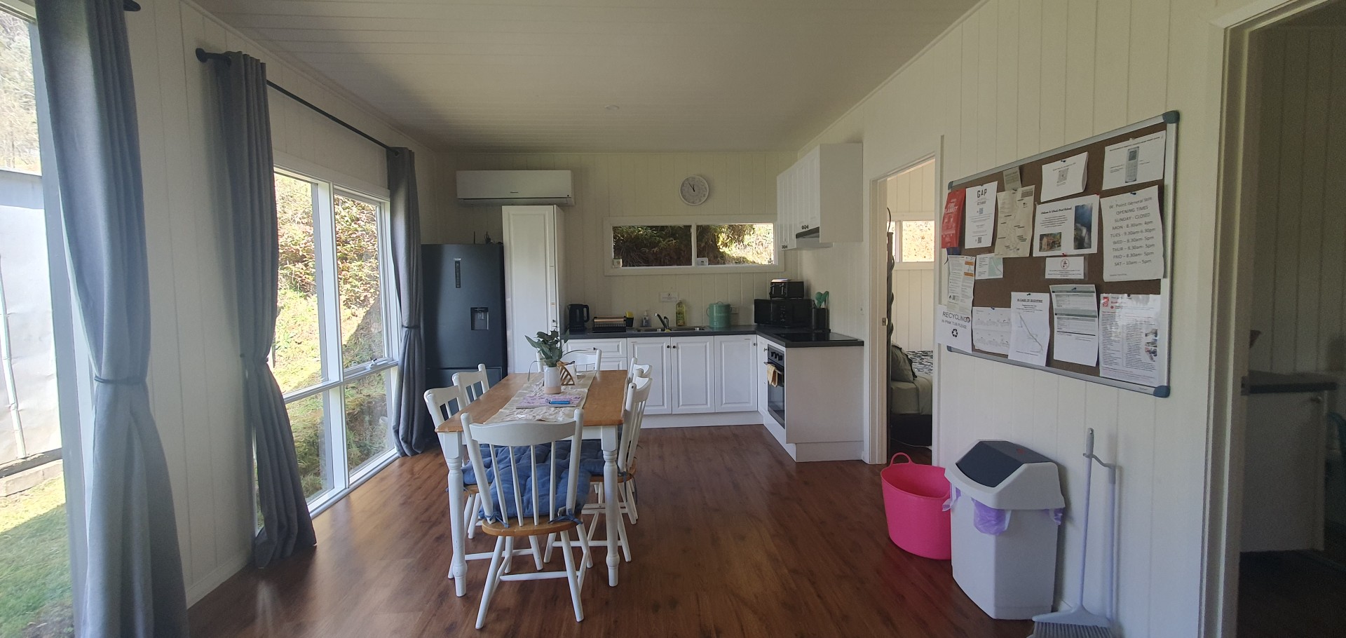 Country style meals can be prepared in the renovated stylish kitchen and served in an open dining and lounge area.