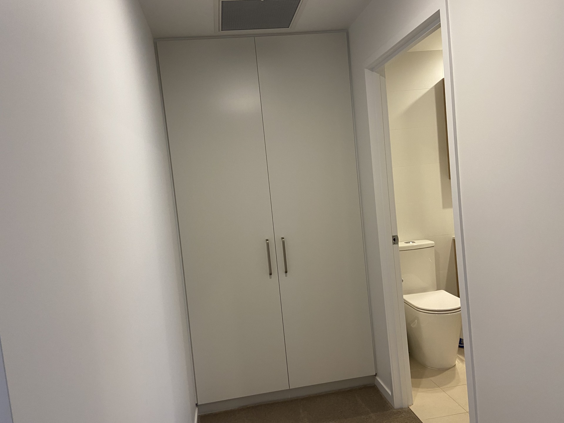 The apartment also has more storage space than you'll probably ever need. Both bedrooms have built in robes and the main bedroom has a huge full-width wardrobe with shelving. There's also a double linen cupboard in the internal hallway and a European style laundry with ample storage. Even the spacious bathroom, with a walk-in shower, has plenty of storage.