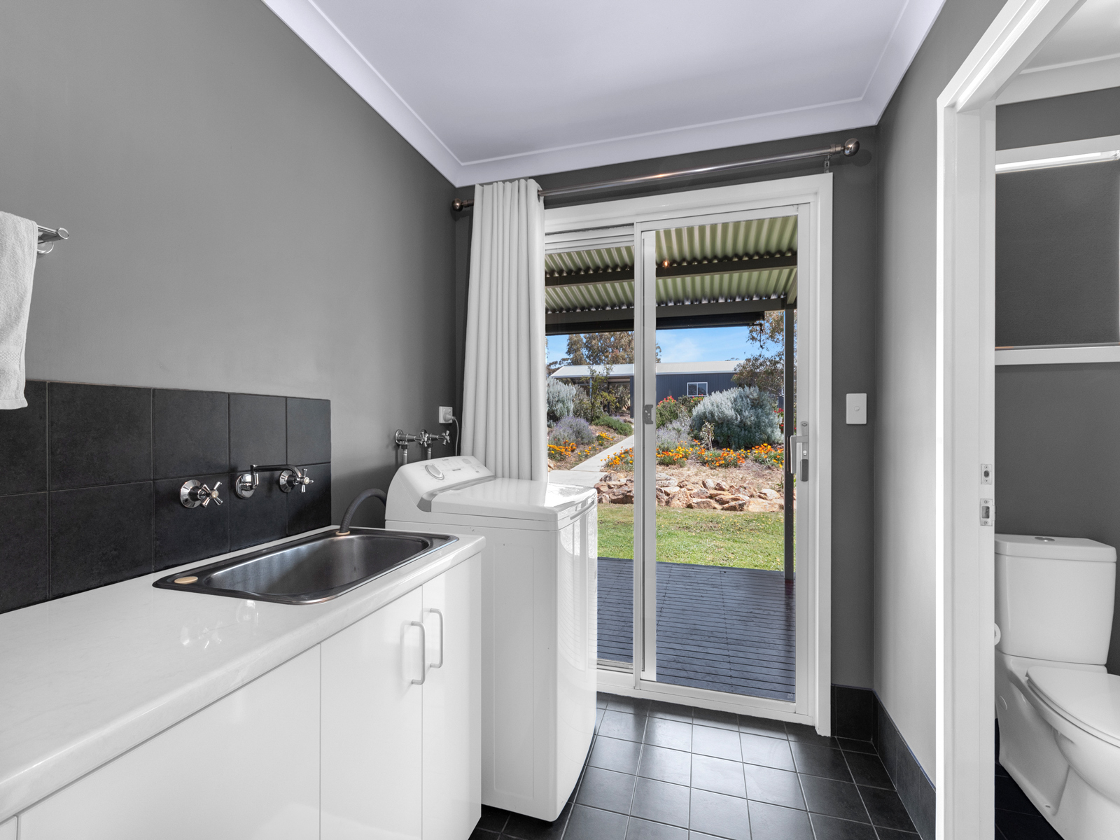 Built by the current owner 10 years ago, this T&R transportable home features a sturdy construction of steel frames, a concrete slab, Colorbond corrugated sheeting and is designed for low maintenance. The spacious open-plan kitchen and dining area seamlessly flow into a separate lounge room, creating a central hub for family activities, while the bedrooms and bathroom are thoughtfully positioned for optimum privacy.