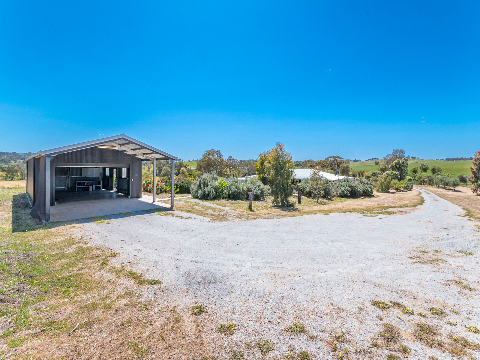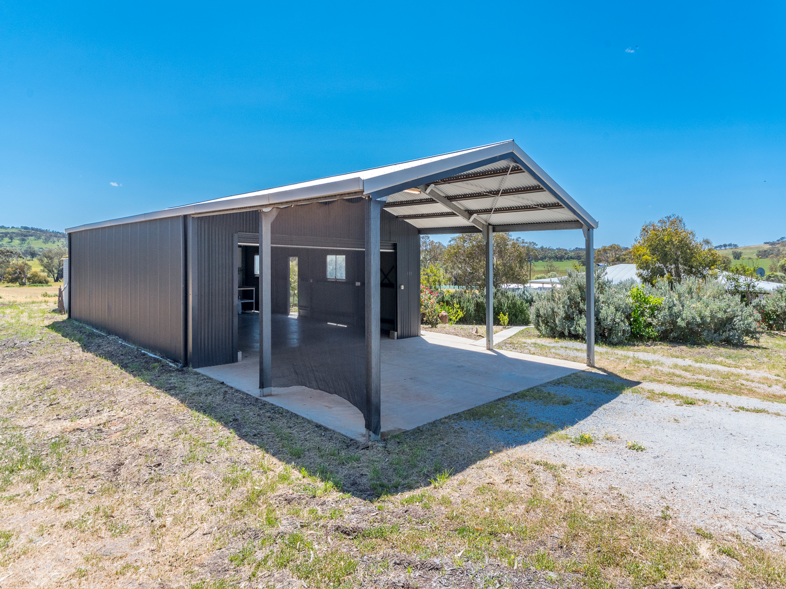 There are two large, fully fenced paddocks previously used for running a small mob of sheep and cropping to produce own stock feed. In addition, there are two 3m x 3m open bay sheds for housing farm machinery, feed or livestock. The 18m x 7m lockable workshop shed features a concrete floor, double-sized roller door, power, lighting and a working shearing stand, providing ample space for all your storage and project needs.