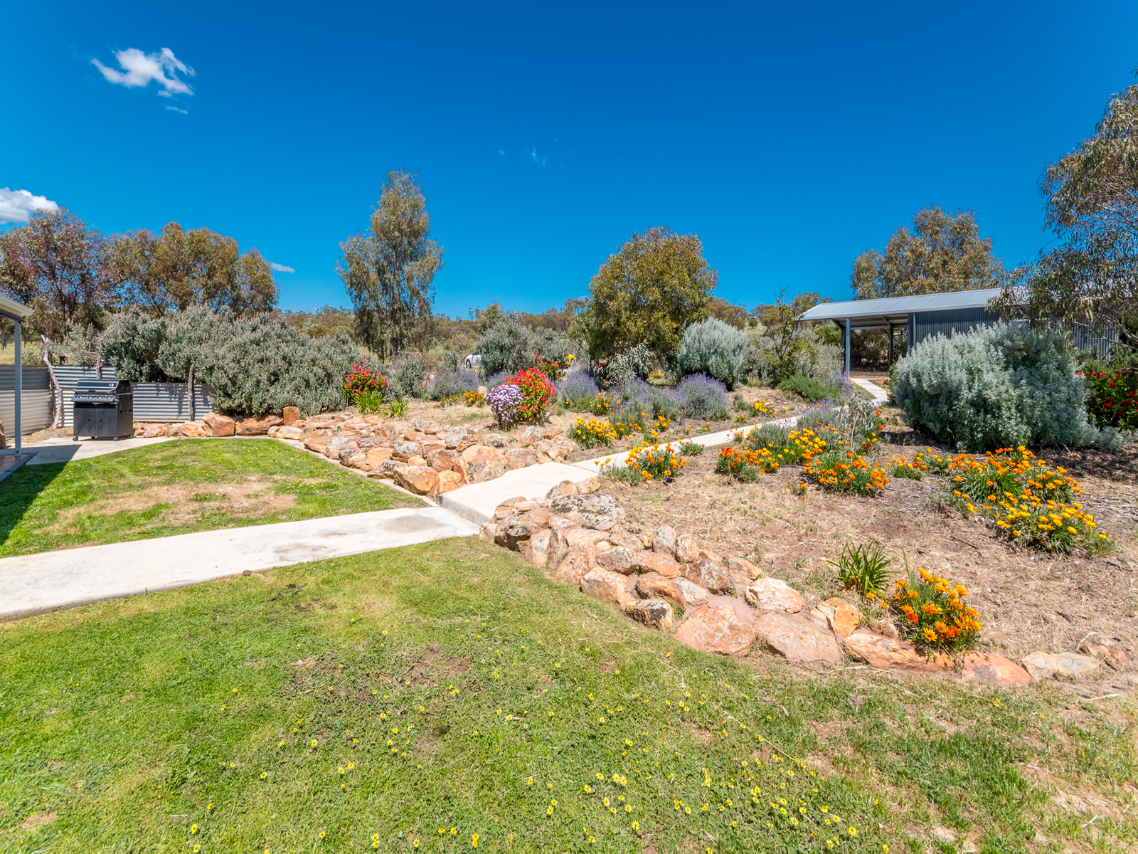 Outside, the garden features hardy, low-maintenance plant varieties creating an inviting outdoor space. The property is also home to a variety of established fruit-bearing trees, including popular favourites like apples, nectarines, olives, almonds, and citrus. With an assortment of other fruit trees there's plenty to enjoy throughout the seasons, providing a rewarding harvest right in your own backyard.