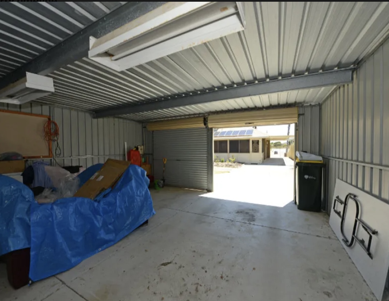 A double length driveway and carport, offering secure parking for two vehicles with extra space for visitors. The property features a powered double workshop, a tradie's treasure with drive through access.