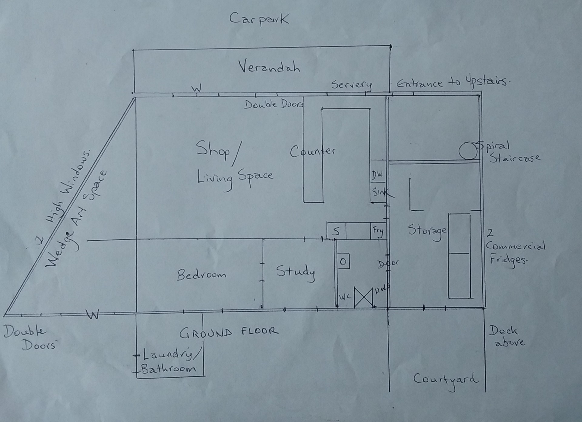 The adjoining Wedge Arts Space ( currently storage) has a professional picture- hanging system and has been a gallery then popup shop for local artisans raising money for charity.
