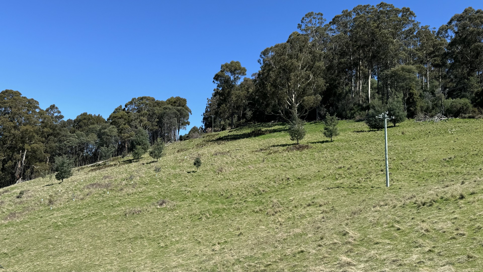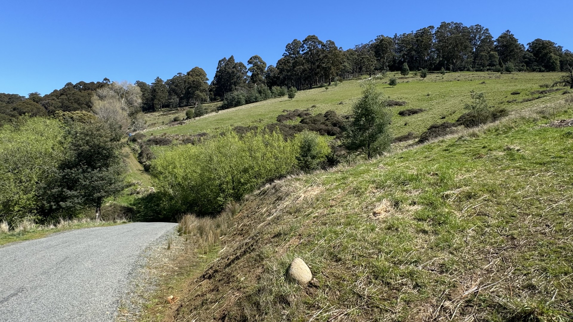 A power line runs across the property and the existing power pole makes connection to the grid very straight-forward and cost-effective. The land has been boundary-surveyed and pegged and the survey will be provided to prospective buyers as well as the results of a pre-purchase soil test and property search. Access is provided by a gravel reserve road at the end of Walpole Lane and a sealed right-of-way across the bottom of the property. An unimproved reserve road land allocation from the 1800s separates the block from its southern neighbour, creating a buffer zone between the two properties which has been planted with native trees. The sloping pasture would be ideal for a vineyard, grazing livestock, or left to the wallabies to be enjoyed at close proximity. Eagles often grace the skies overhead and the soil is a gardener's delight.