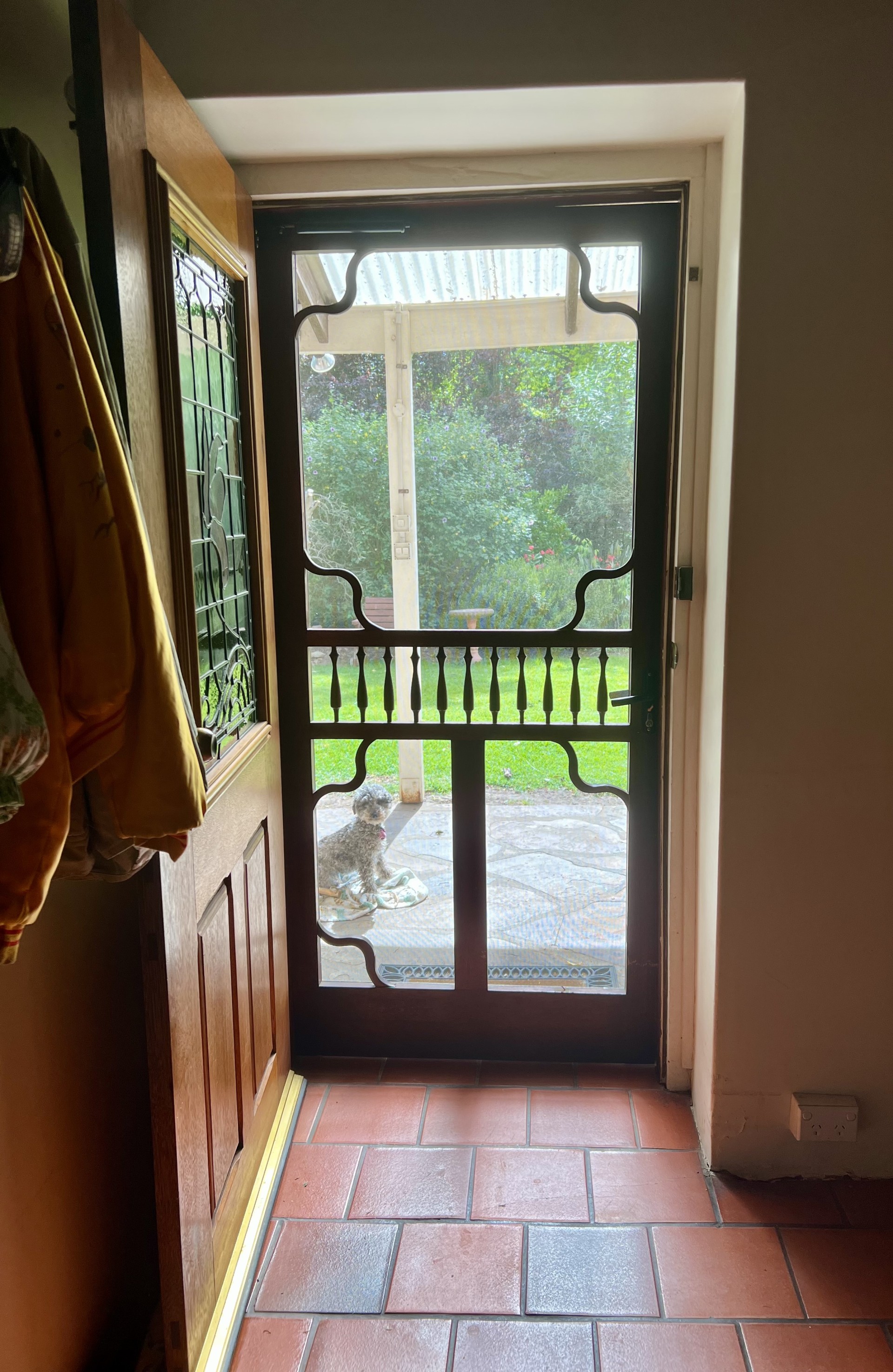 - ornate lead light doors provide natural light and fresh air into the cellar