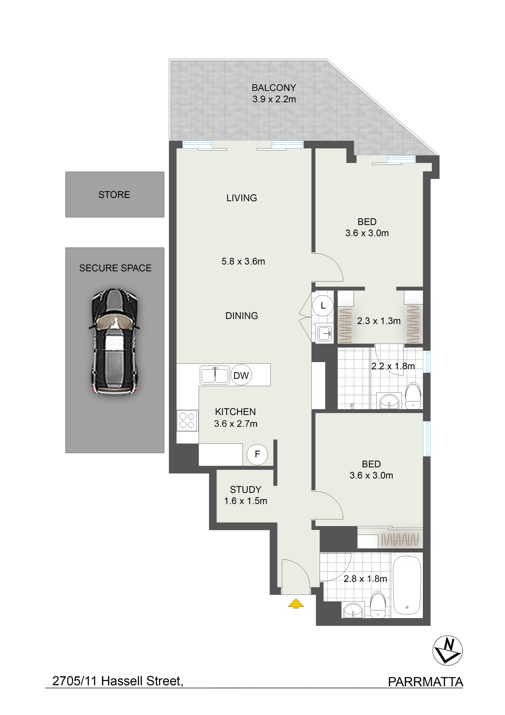Modern 2 Bedroom Apartment with Study at great location in Parramatta