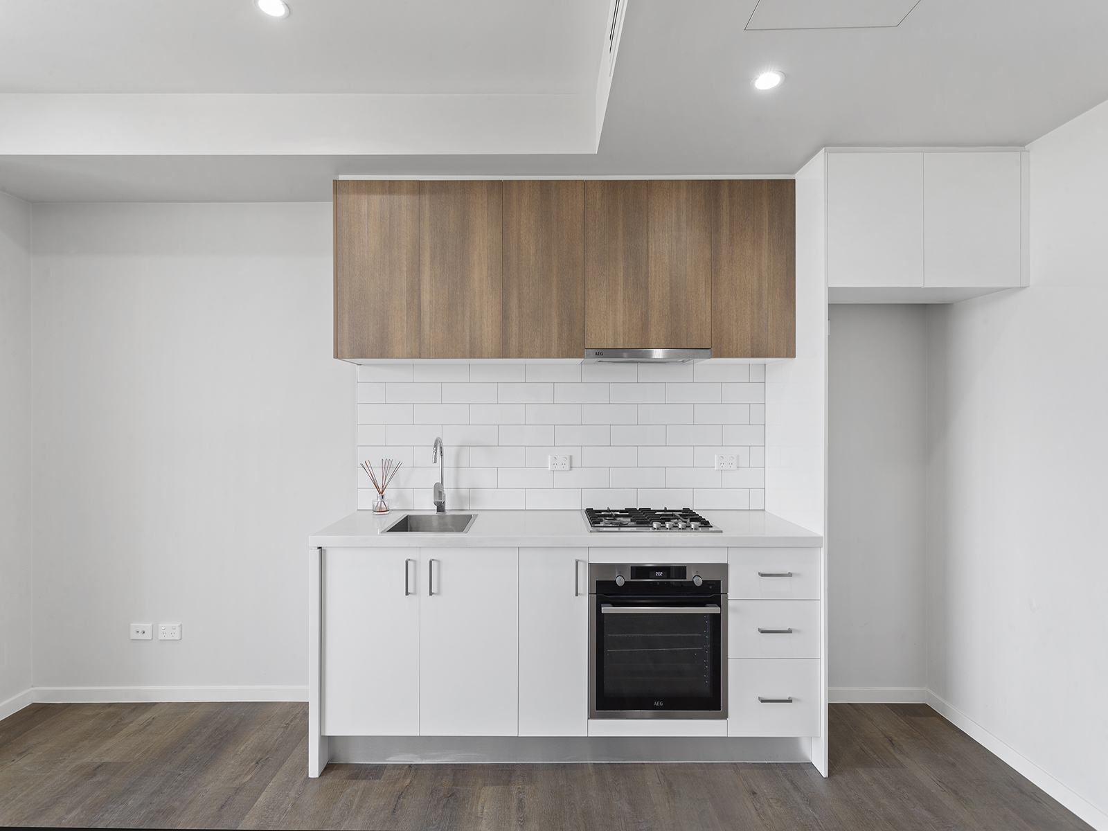 Neat kitchen with gas cooking and subway tile splashback