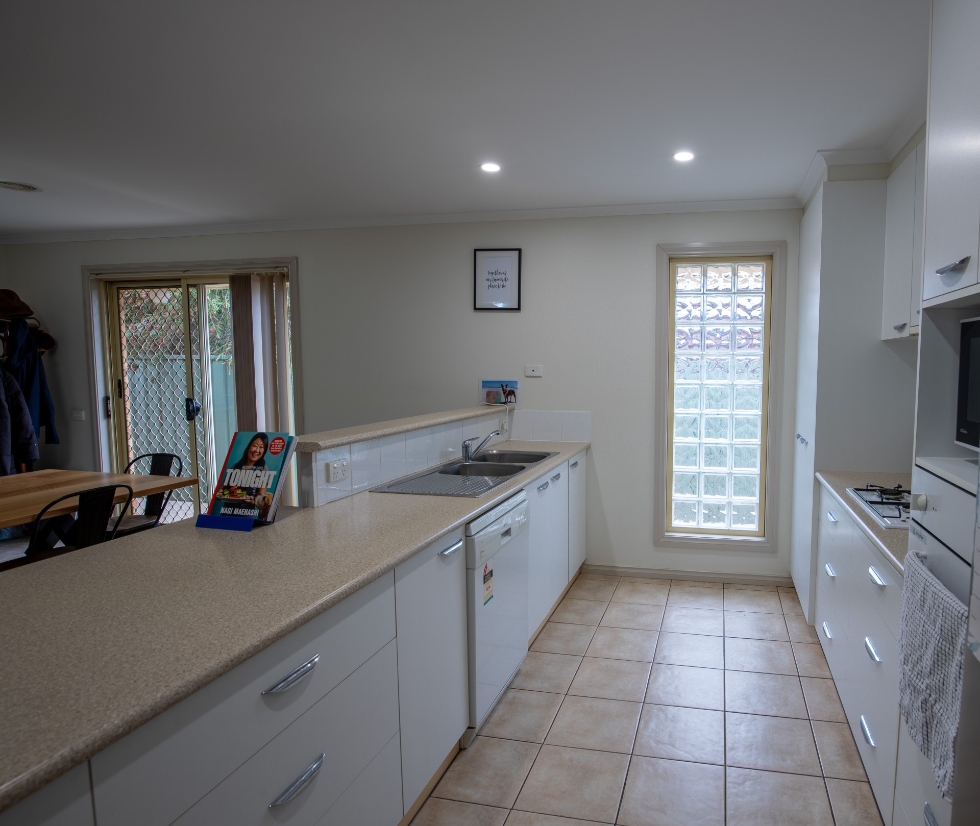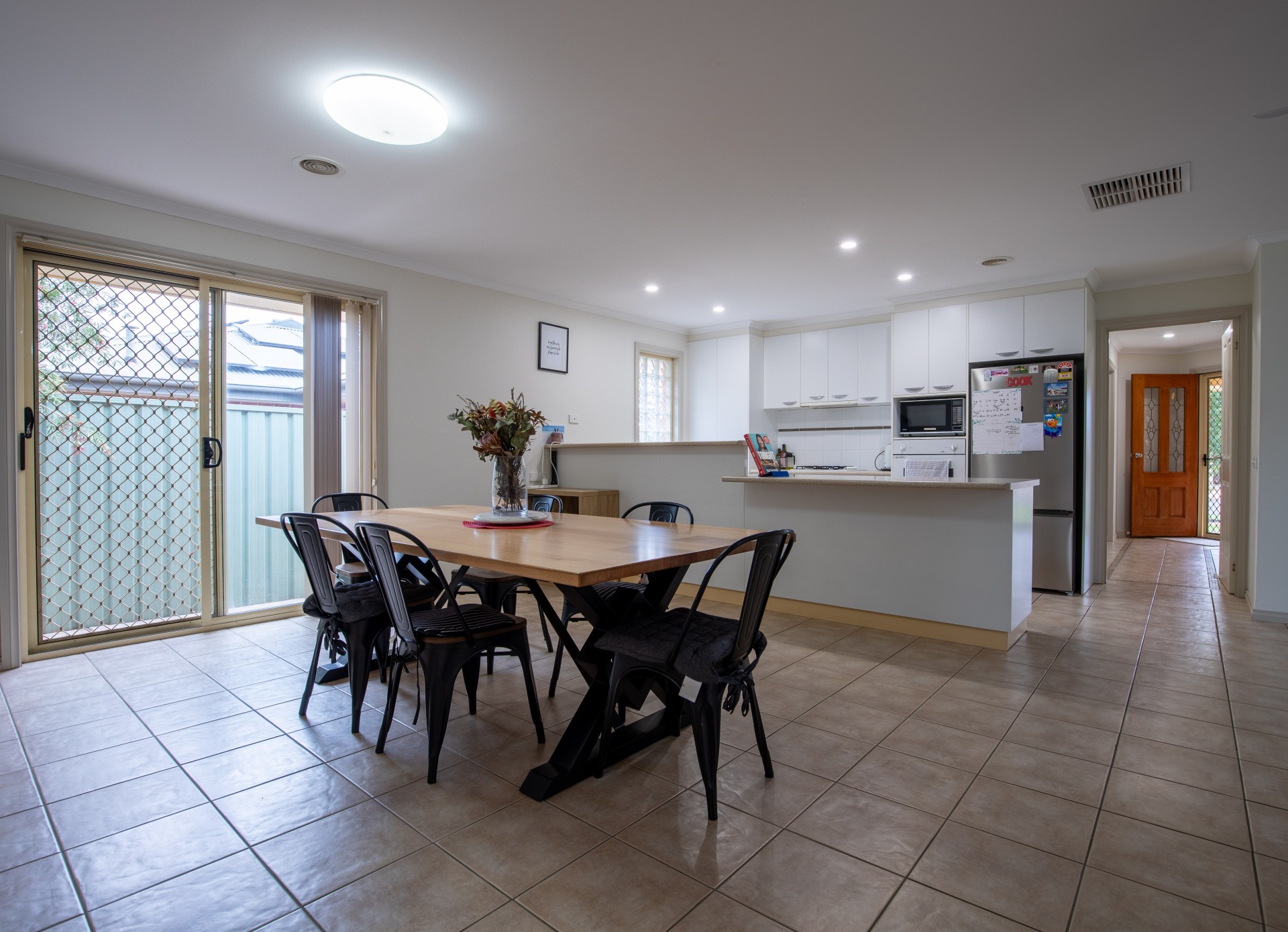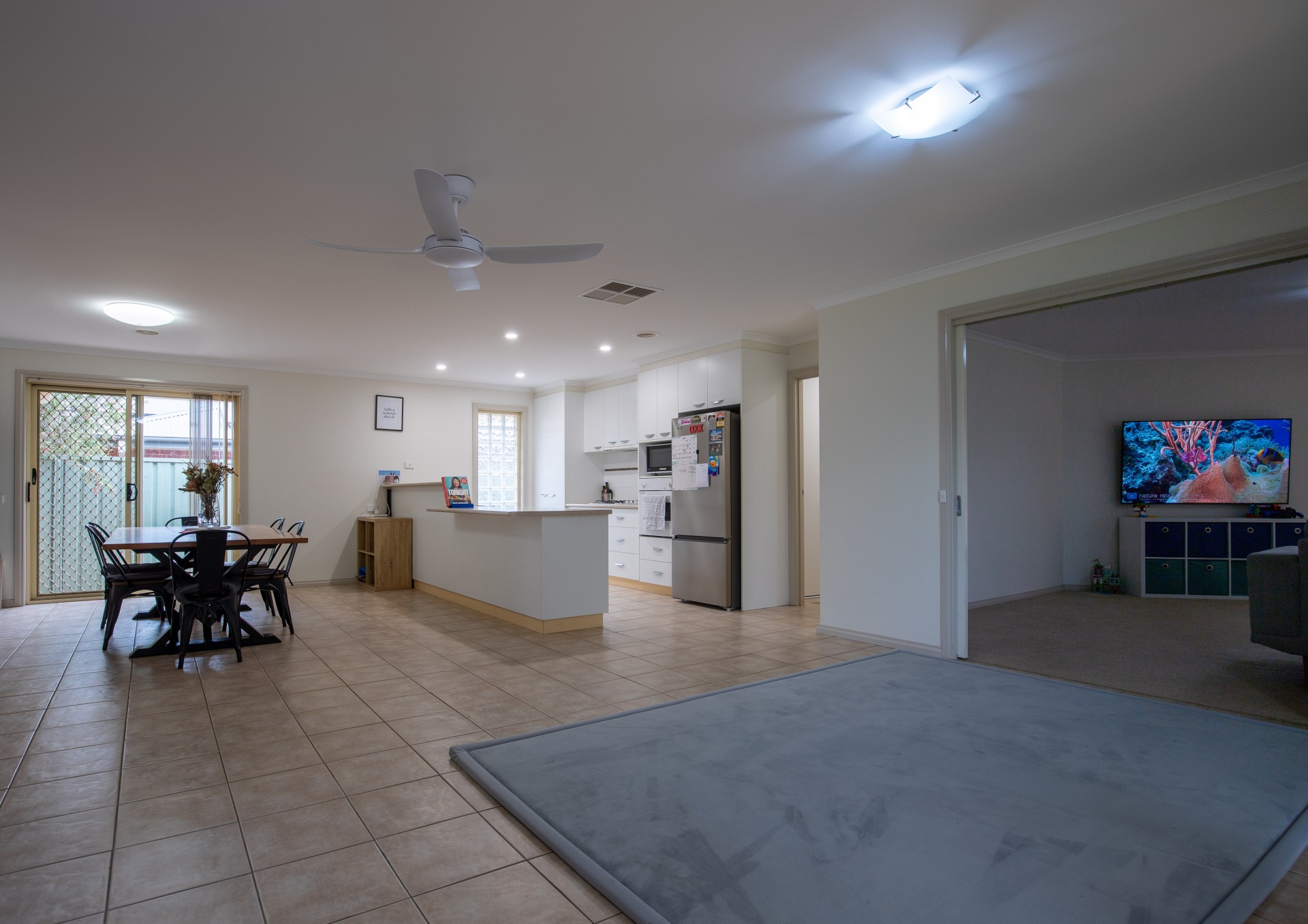 Entering through the front door, walking down the hall you enter the very open planned Kitchen, Living and Dining room.
