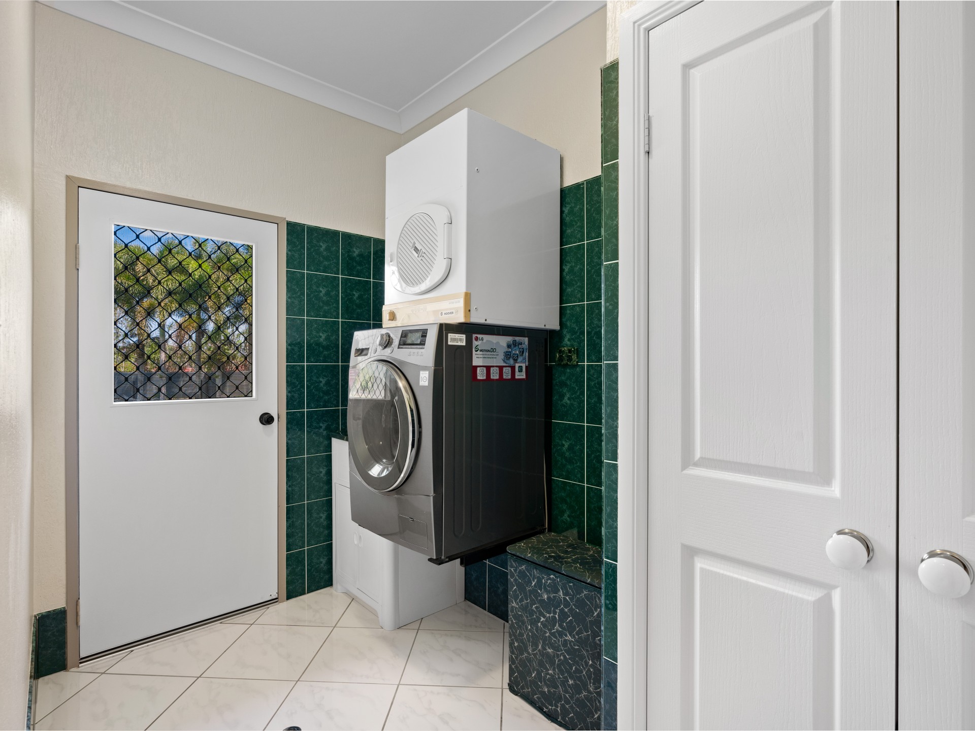 3/ Internal laundry area including, Front-Loading washing machine and wall mounted Dryer.