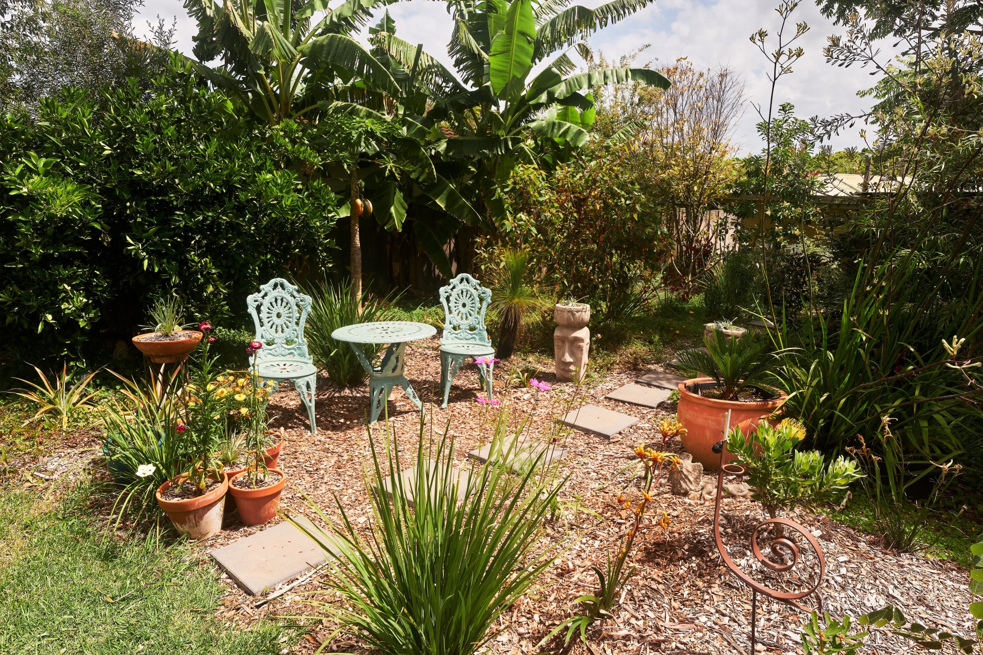 The garden at 11 High Street is a delightful showcase of native Australian flora, offering a tranquil setting that blends natural beauty with productivity. Among the native plants, the garden also features a bountiful variety of fruit trees and plants, including mangoes, papayas, pineapples, blueberries, bananas, oranges and lemons. This combination of lush native greenery and abundant fruit species creates a vibrant and diverse landscape, perfect for enjoying fresh produce and the beauty of nature right at your doorstep.