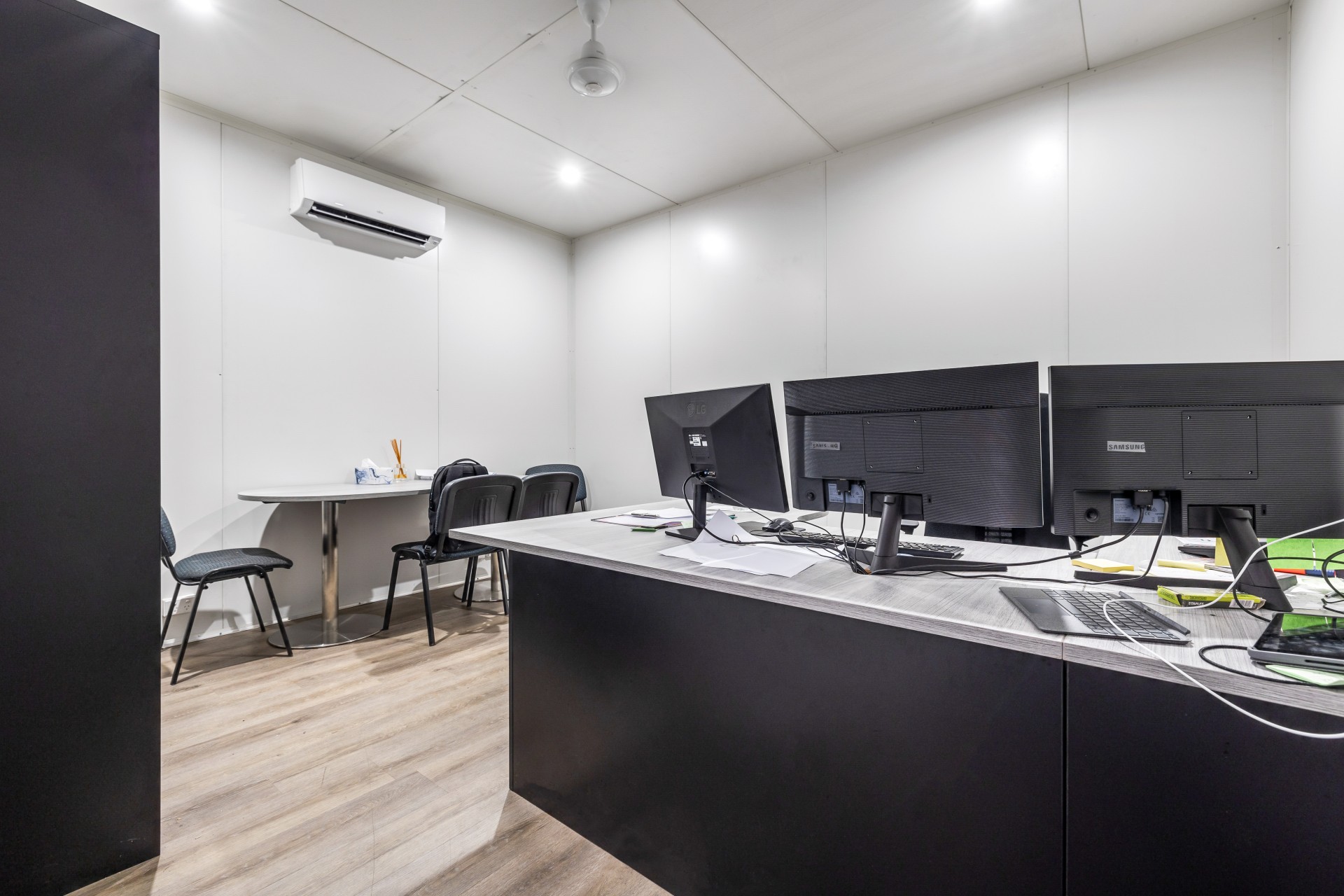 The front tenancy is occupied by a security company and disposed as 2 airconditioned offices, bathroom facilities and an open plan warehouse.