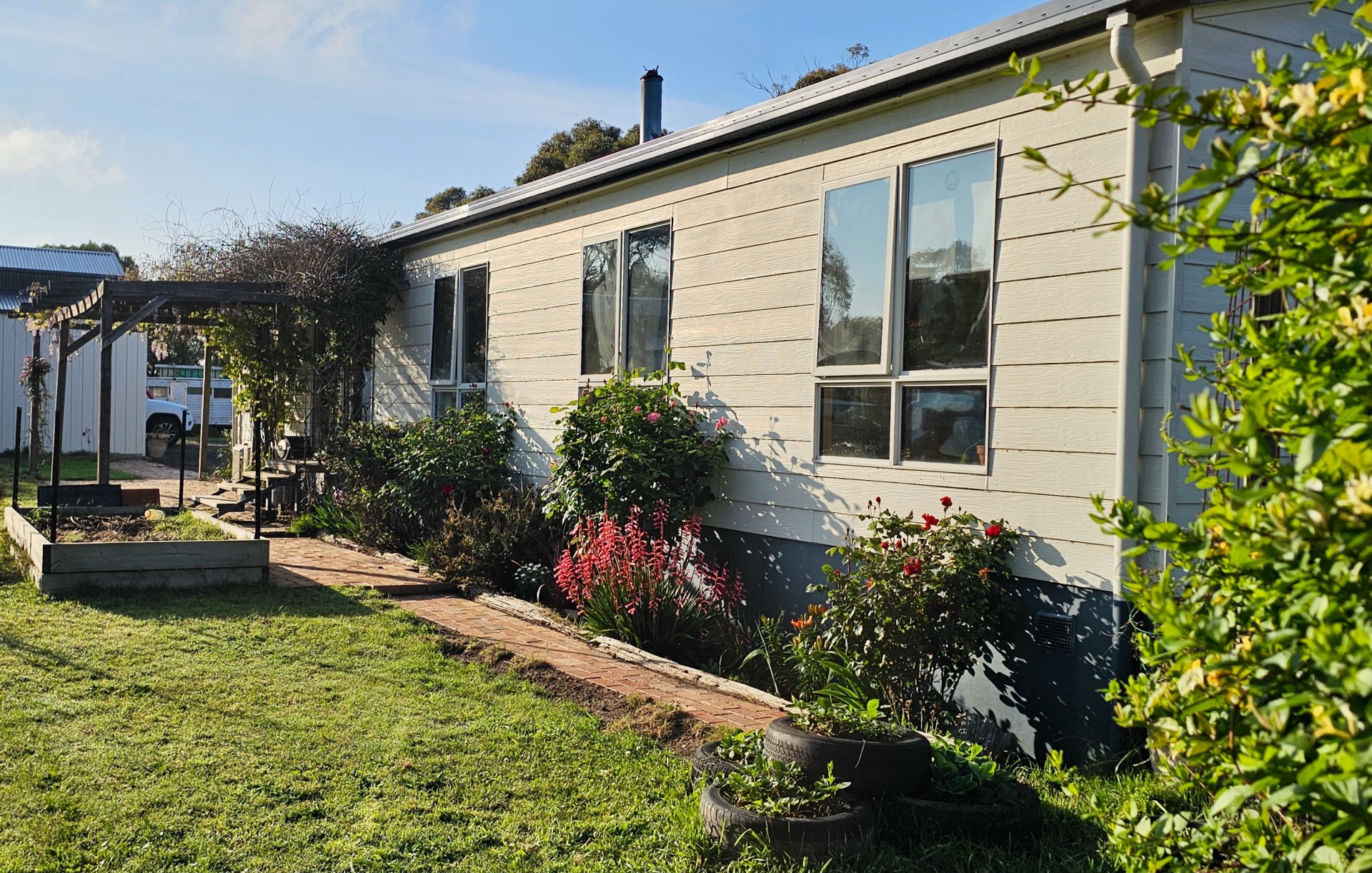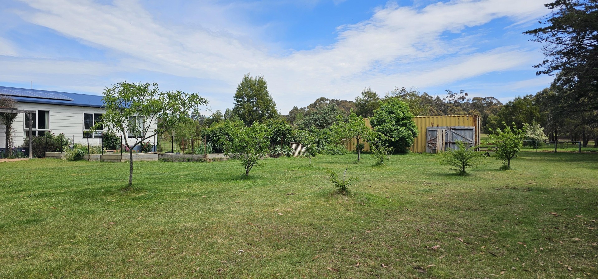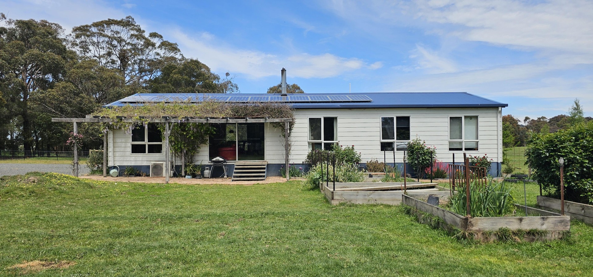 Two x 55,000 litre water tanks provide ample water and the septic with sand filter system waters an orchard with apple, cherry, pear, nectarine, plum and lemon trees. The house has very low running costs. There is also a very productive berry patch with strawberries, raspberries, logan berries and boysenberries, raised beds for veggies, and a chook shed.
