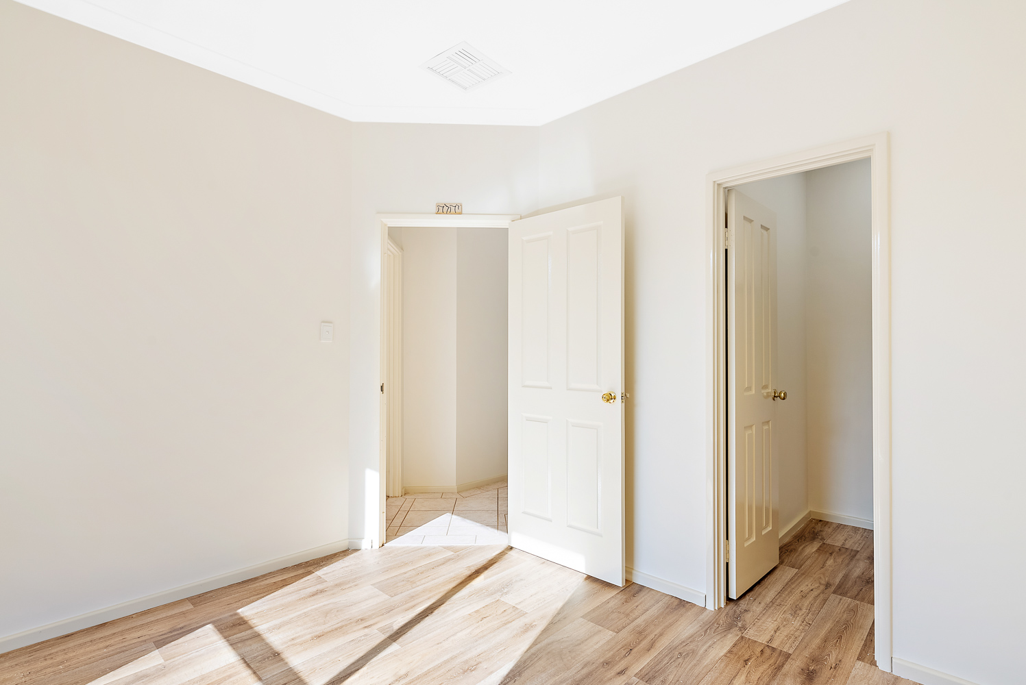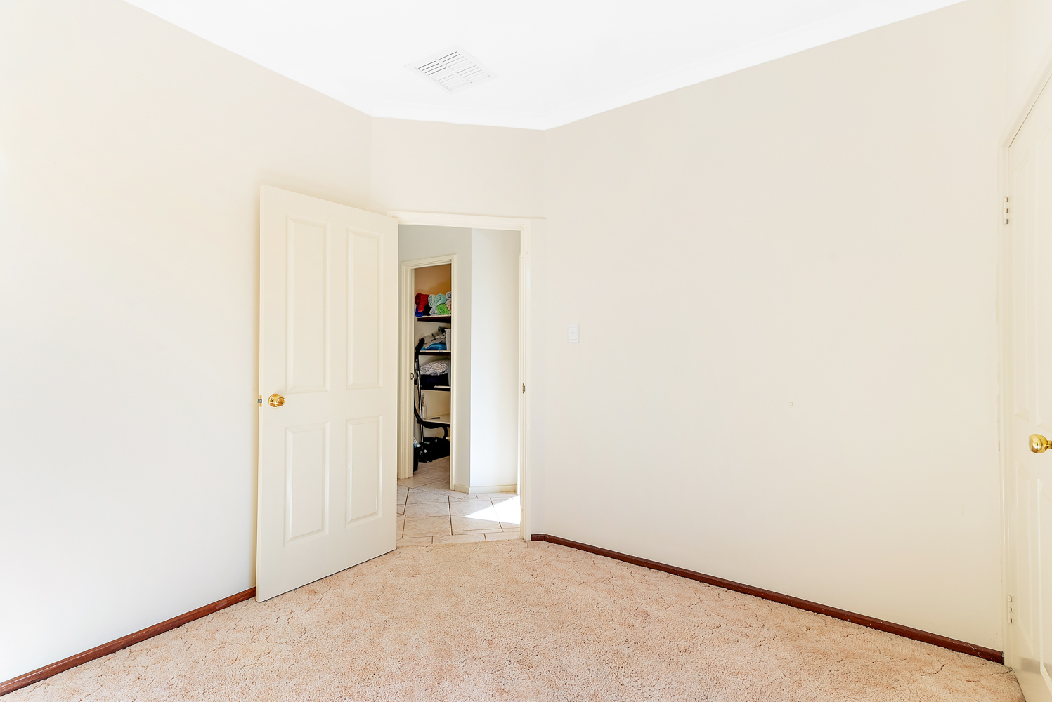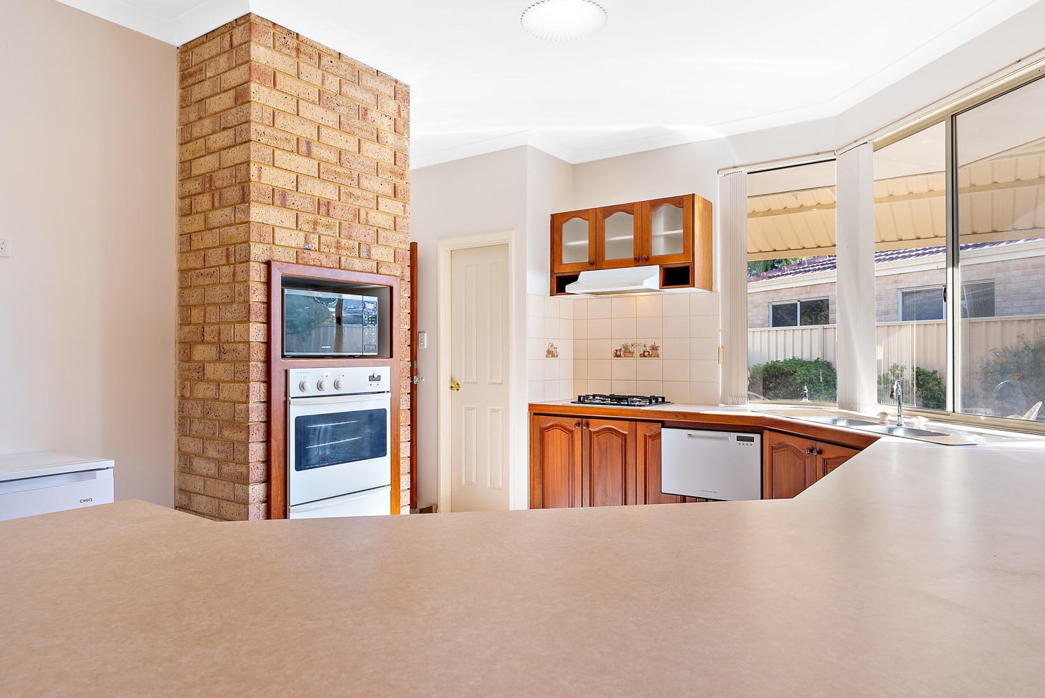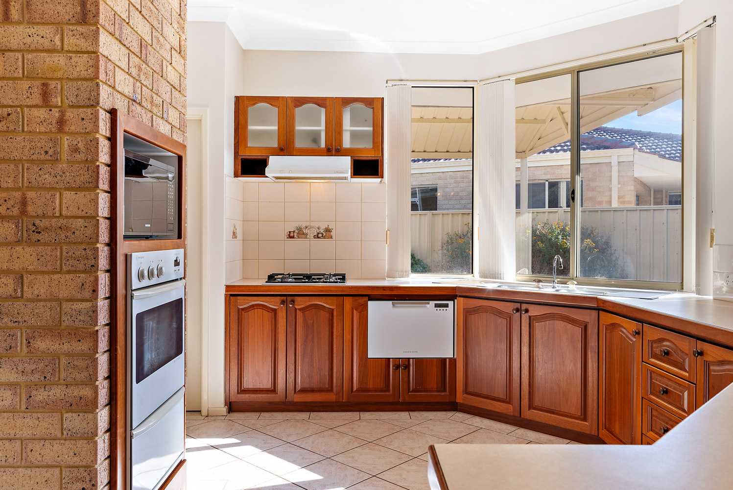 Generously sized living and dining areas, with sliding door access to the alfresco and gardens. The large, central roomy kitchen is plentiful with pure Jarrah cabinetry with a large breakfast bar for essential counter space and casual dining, with a shopper entrance, gas cooktop and double fridge space. Fisher & Paykel dishwasher & a full height walk in pantry.