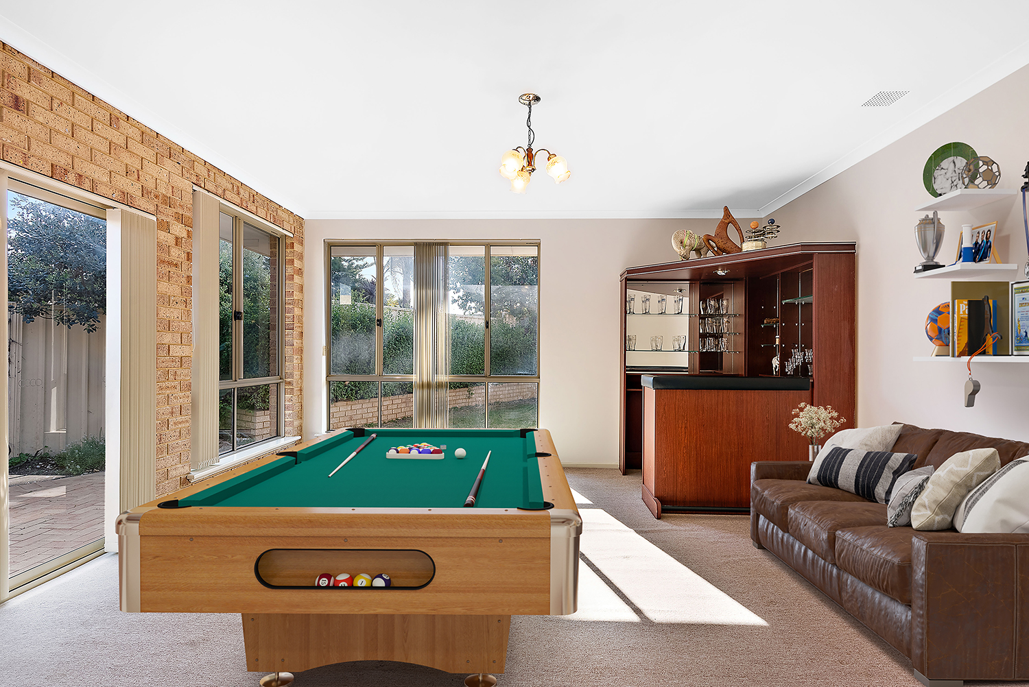 The large master bedroom has extensive robe storage, Jarrah sills and jarrah skirting all around the house, it has a high 9ft 2.7m ceiling height ceiling, Games room with built-in bar, and doors leading to the backyard. 3 gas bayonet points (lounge, family, and games).