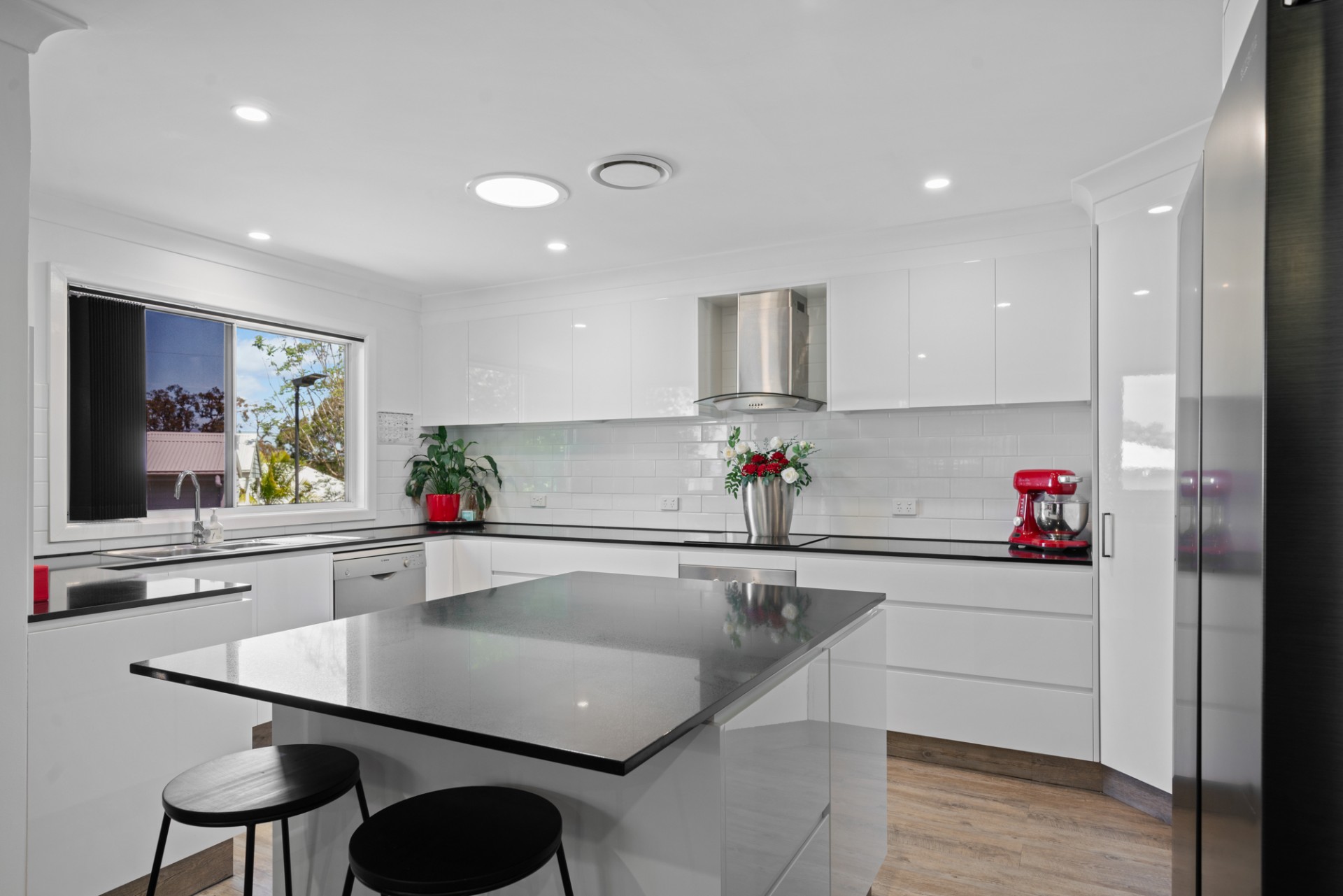 • Open plan kitchen with a built-in oven, dishwasher, induction cooktop and large pantry