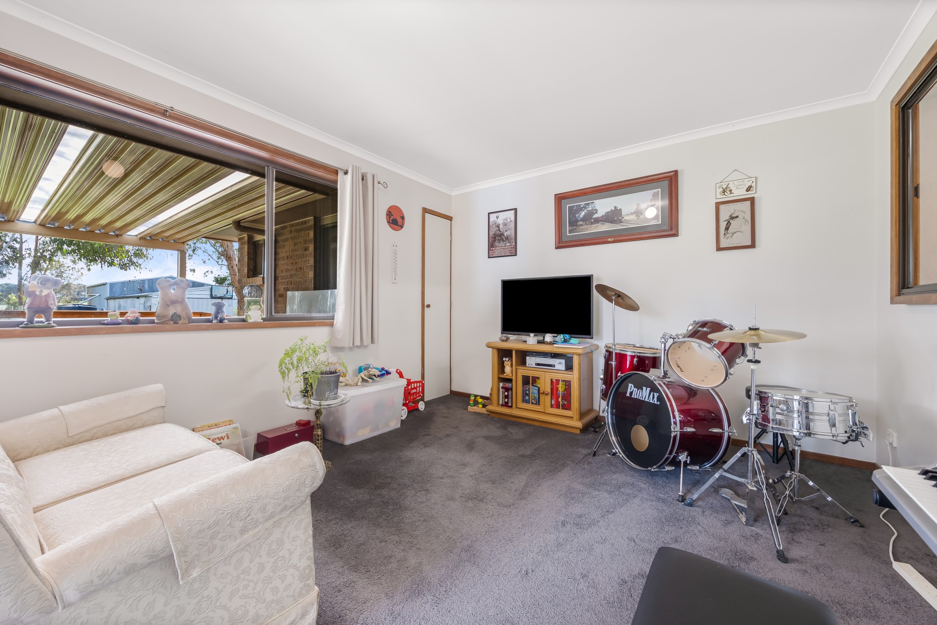 There is a large family bathroom with a bath & shower & sep toilet. Also 2 linen cupboards. Good size kitchen with elec cook top & oven, also a rangehood. Lots of cupboard space & a large walk in pantry. Off the kitchen is a games room for the kids to play. The lounge room is L-shaped with wood heater & a split system. Outside enjoy a BBQ on the deck. Overlooking the big backyard, the kids will love to run around the fully enclosed yard safe & secure. The large shed could easily fit 4 cars, it has power connected & a 5000 litre water tank & pump. Great for watering the garden & washing the car. A caravan shed is attached to the home..There is also 16 solar panels installed last year. Across the road is the primary school, a short walk down to the pub for a great meal & also the general store & post office.