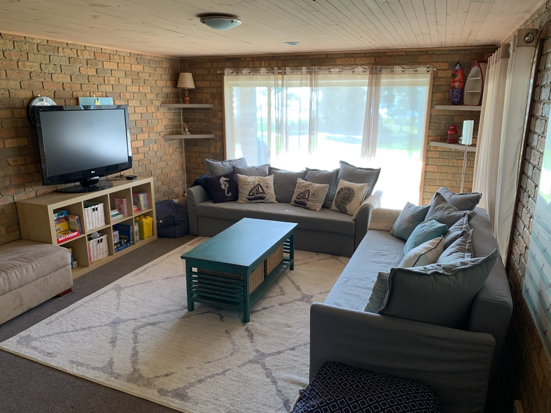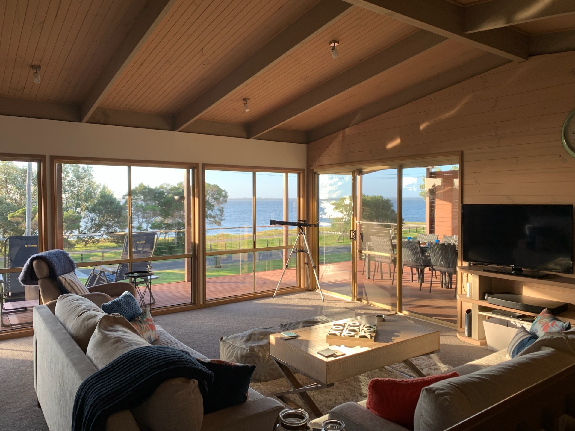 Outside the expansive front lawn has seen many family cricket matches and has plenty of room for additional guests with space for Caravans, Tents and Boats.