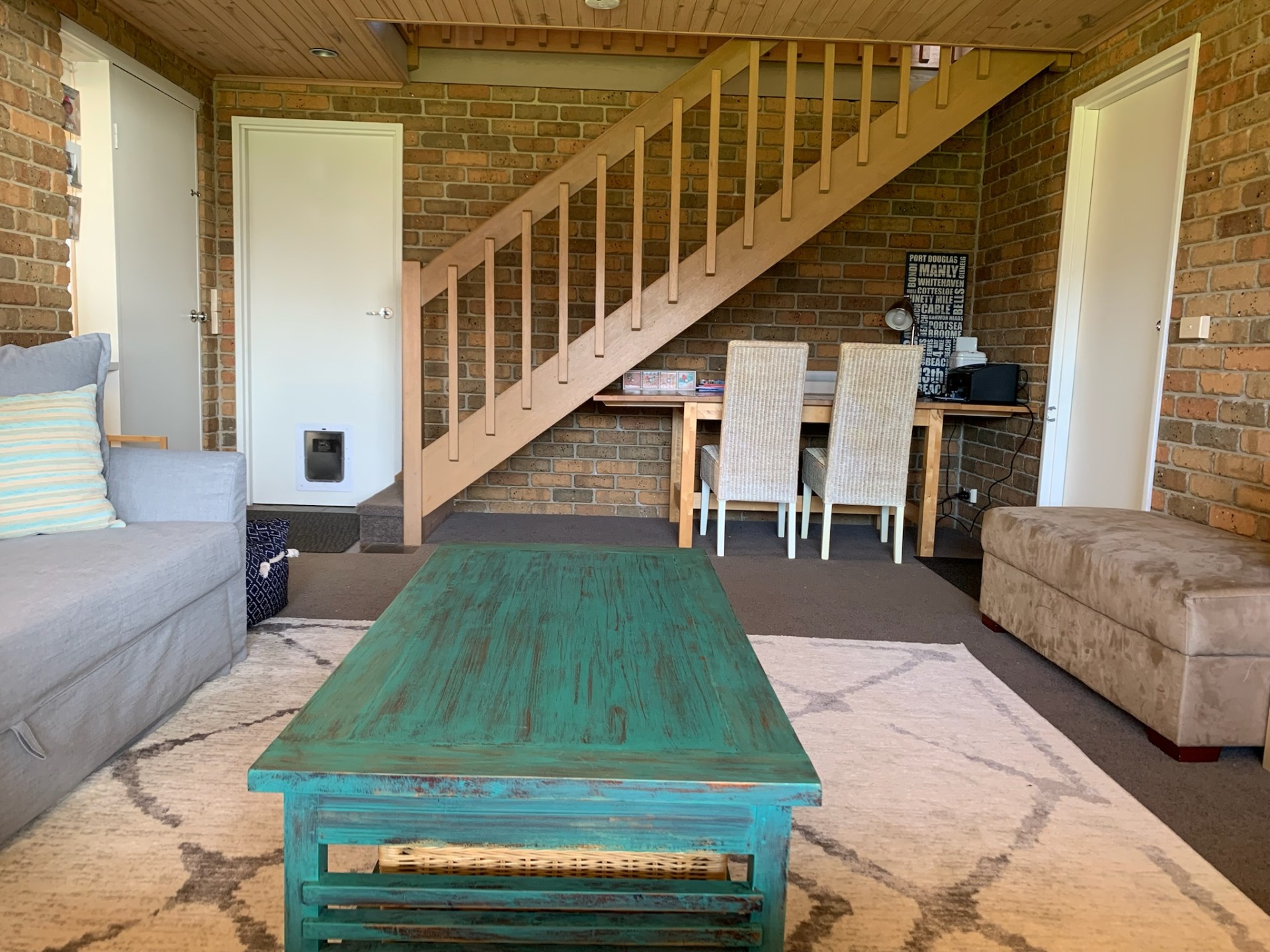 This lakefront beauty spans over two levels with the lower storey comprising of an attached, full-length carport on one side of the home and full-length garage on the other side. The garage is complete with work benches and inbuilt storage with room for single car storage or ample room for all the beach and boat toys any family could need. Internal access from the garage leads into the second living space and desk area, a perfect rumpus room for the kids! Currently two convertible double bed couches in this space make extra guest accommodation easy. Continuing downstairs is a huge laundry area with second shower and toilet. The laundry also has external access making it perfect for sandy toes coming in from days at the Lake.