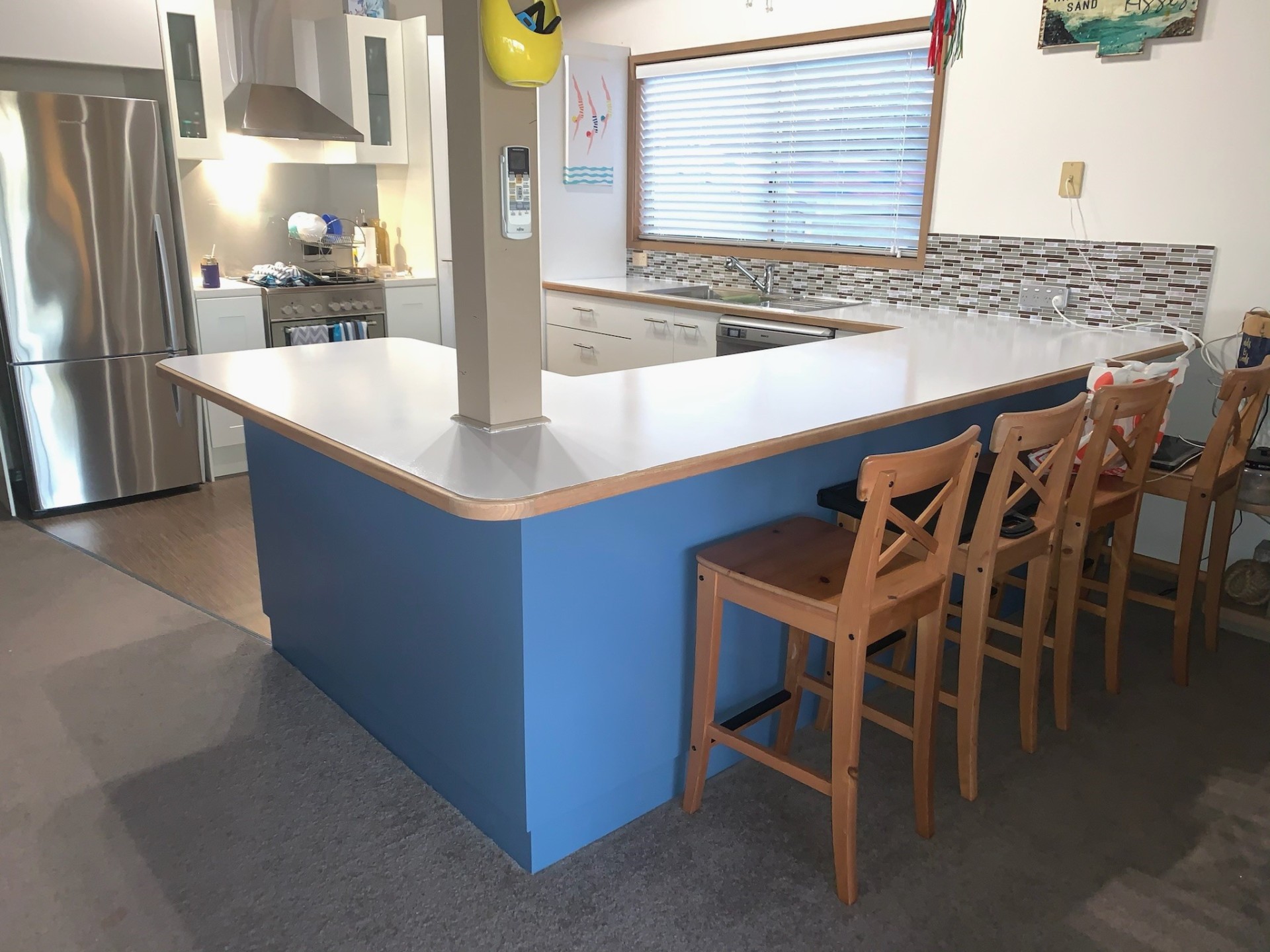 The fully renovated upstairs Ekodeck for a beautiful and maintenance free area. Storage is plentiful with a huge double door cupboard and corner storage cupboard in the laundry in addition to the upstairs linen cupboard in easy reach of the bathroom. The kitchen includes a large corner panty with extensive cupboards and drawers.