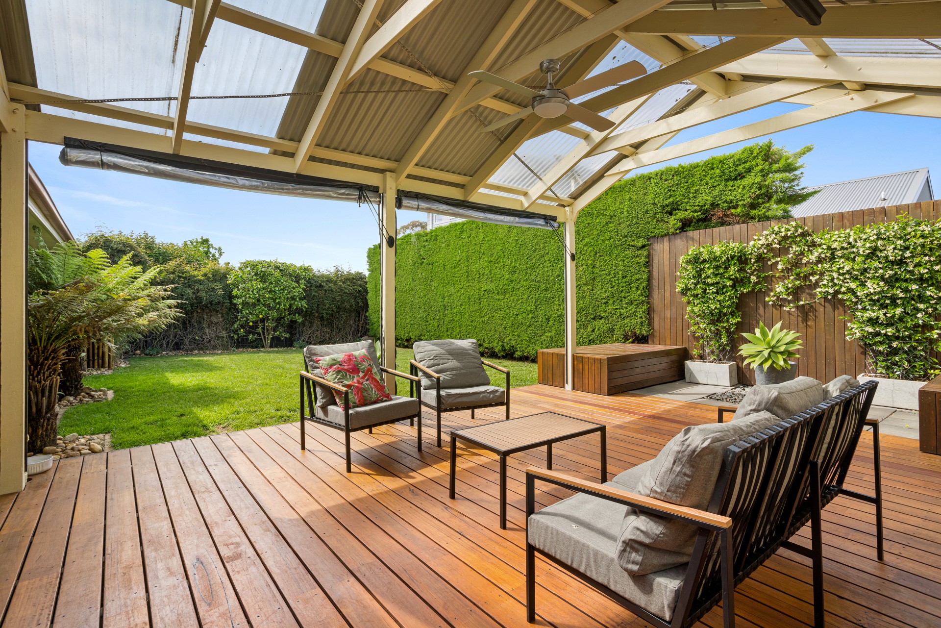 Step outside to a fantastic undercover deck, perfect for weekend BBQs and entertaining. This private backyard oasis, complete with a lush lawn, raised vegetable beds, and established gardens, is ideal for relaxing while watching the kids or pets play. 2 garden sheds and a side undercover area offers additional storage for all your outdoor needs.