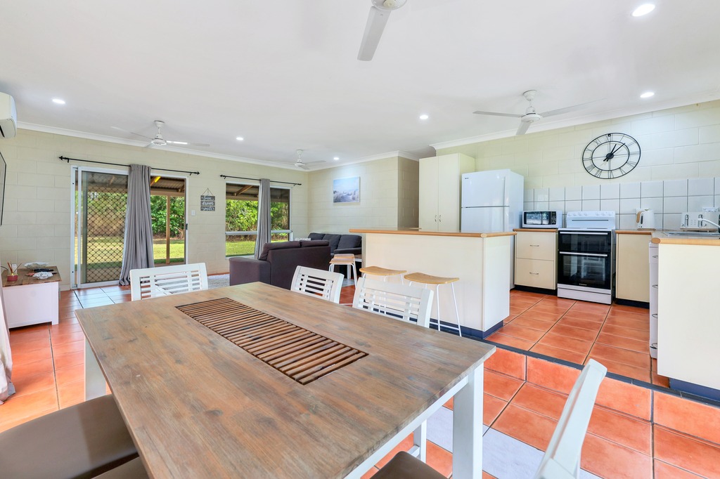 Inside the home is a generous open plan living and dining area with tiled flooring and air con throughout.