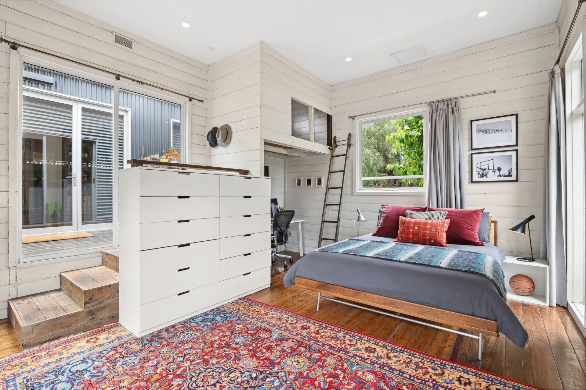 The house has undergone a complete transformation with a sparkling new kitchen, laundry and bathrooms. There are three bedrooms in the main house with a fourth bedroom in the enormous semi-detached studio. The master bedroom has an oversized ensuite with a luxurious bathtub and a private deck accessible by sliding doors. The floors have been meticulously laid during the renovation with refurbished hardwood boards from the old hotel and the house is full of character and charm. The kitchen and dining area is a light filled space and extends into the study/home office, where you can really enjoy the views of the paddocks to the west.