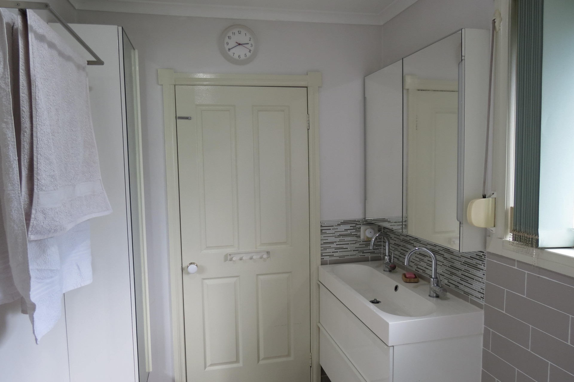 We've had the bathroom renovated in the past few years, and it's a clean and bright space and easy to keep clean.