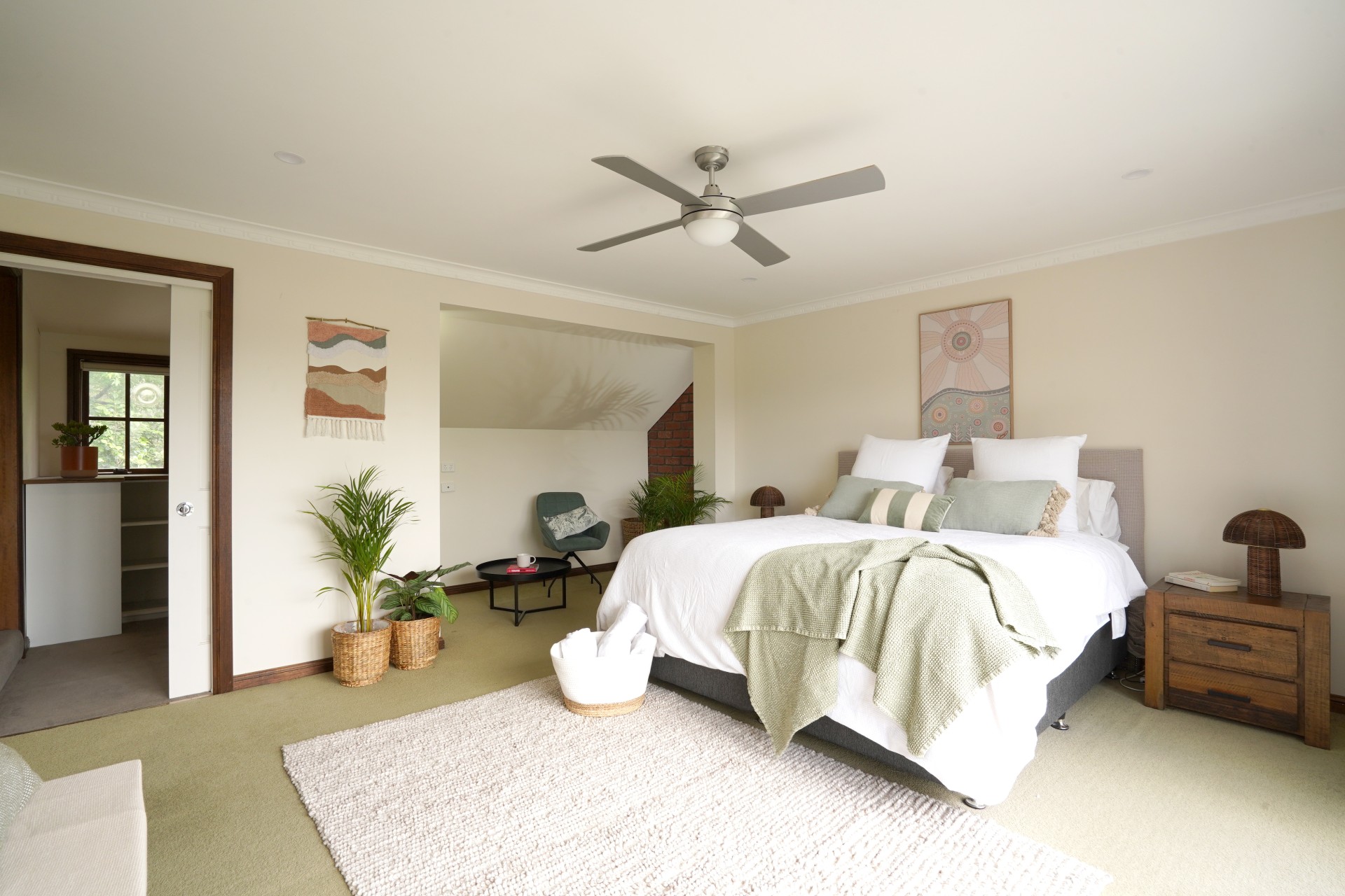 Downstairs has 2 large lounge areas, 2 dining areas, kitchen, powder room, 2 toilets, 2 fireplaces and large laundry/mudroom. The upstairs and downstairs of the house is fitted with reverse cycle heating and cooling and overhead fans in many rooms.