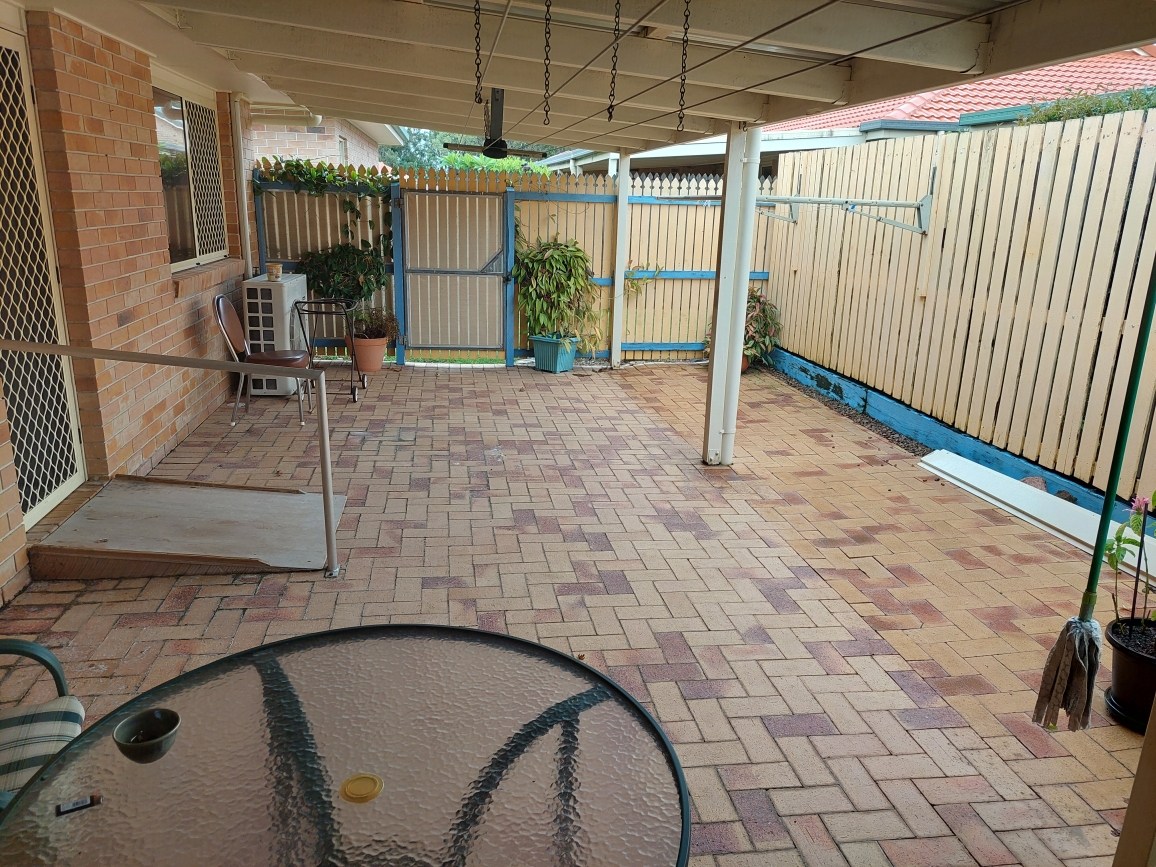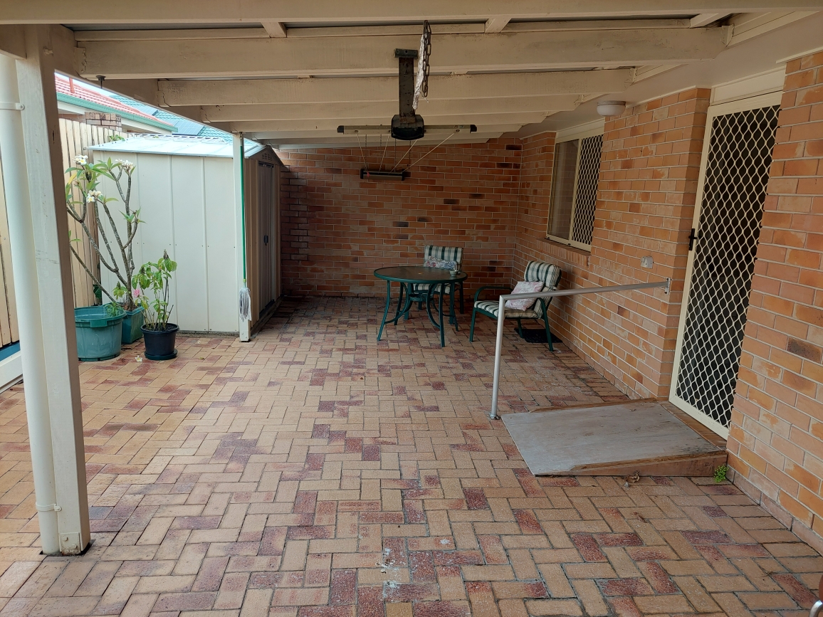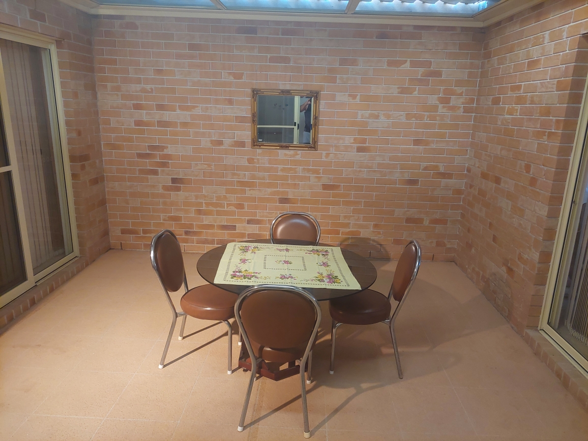 Atrium with large built-in cupboard, automatic Vergola roof and fully screened made for entertaining or a hobby or both.