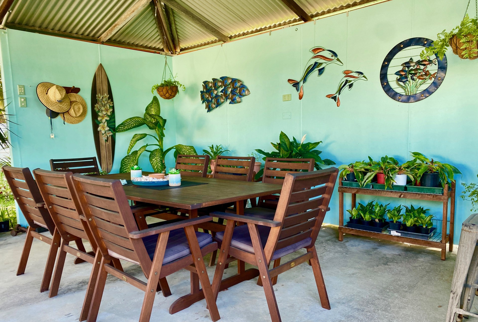 This deck provides a a great vantage point to enjoy the visiting birds and wildlife, and also watch the summer electrical storms and wet season downpours.