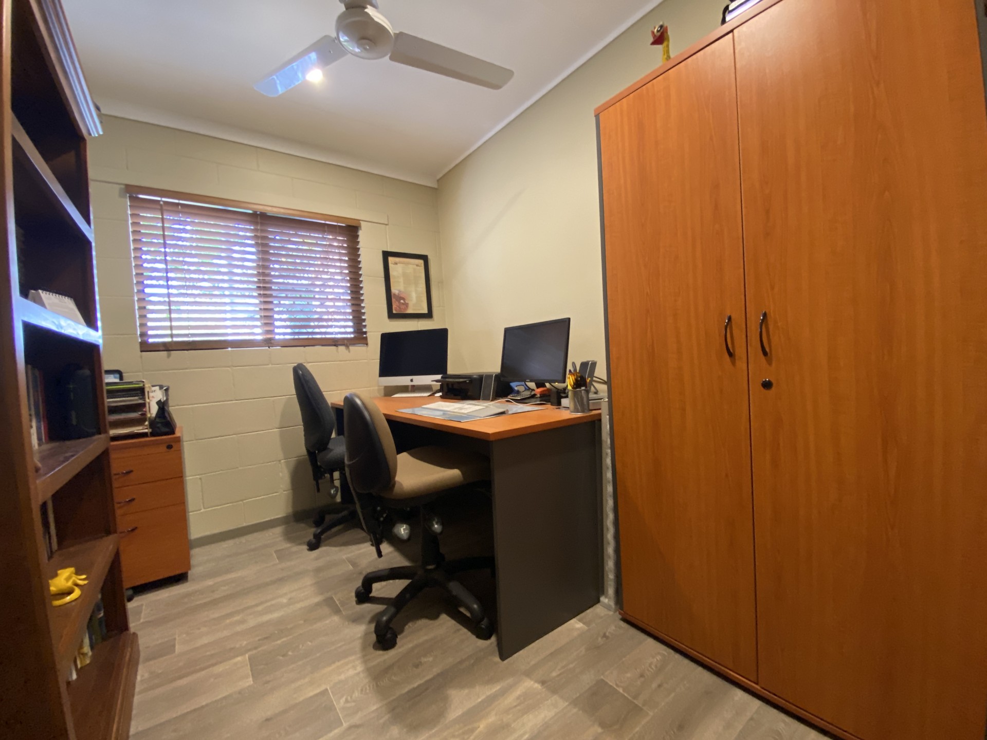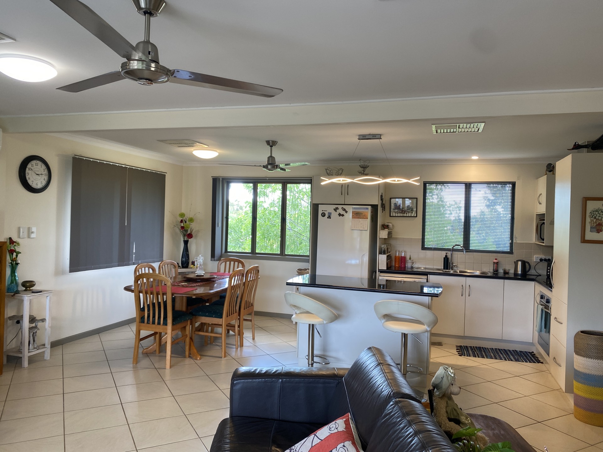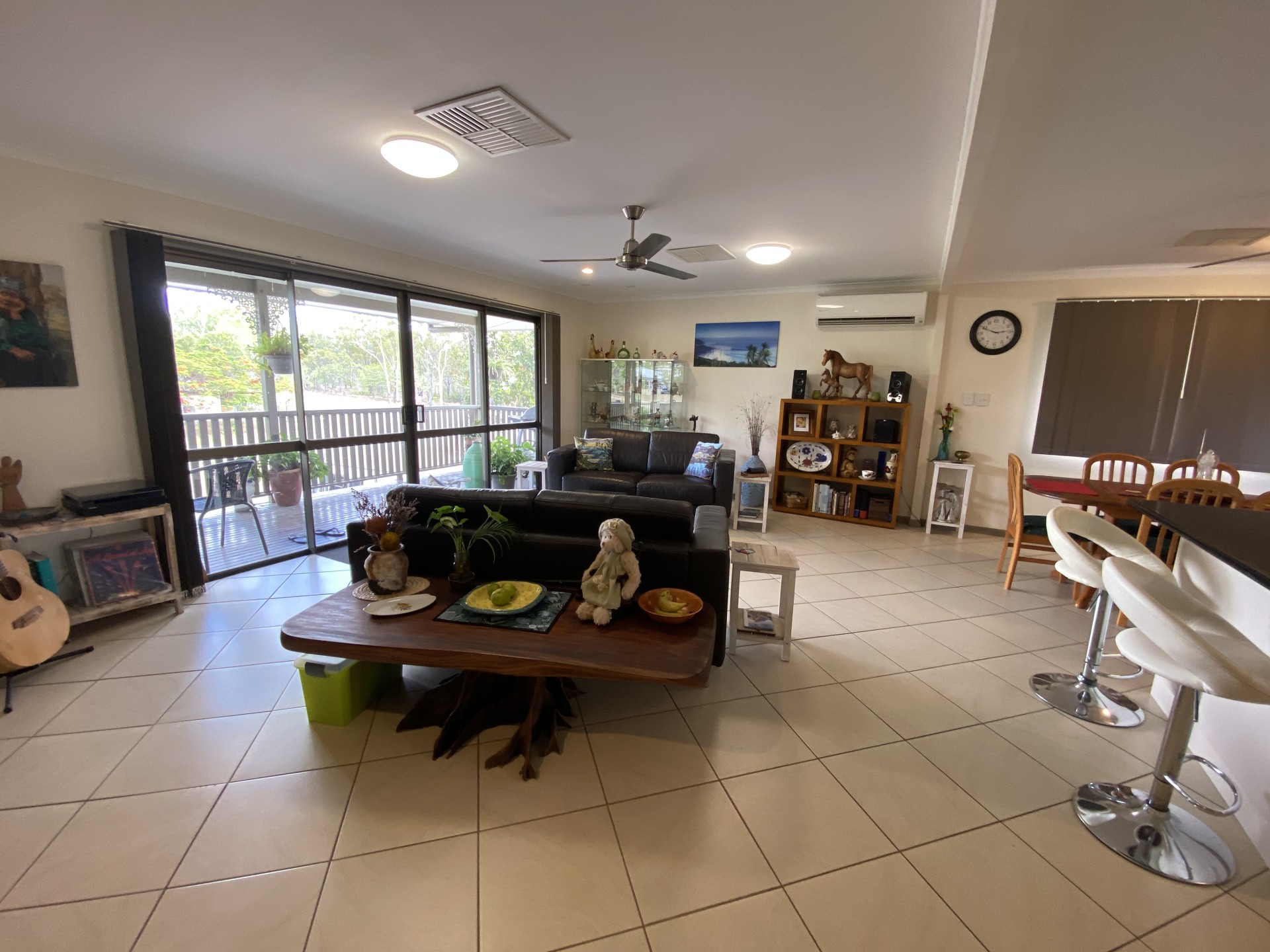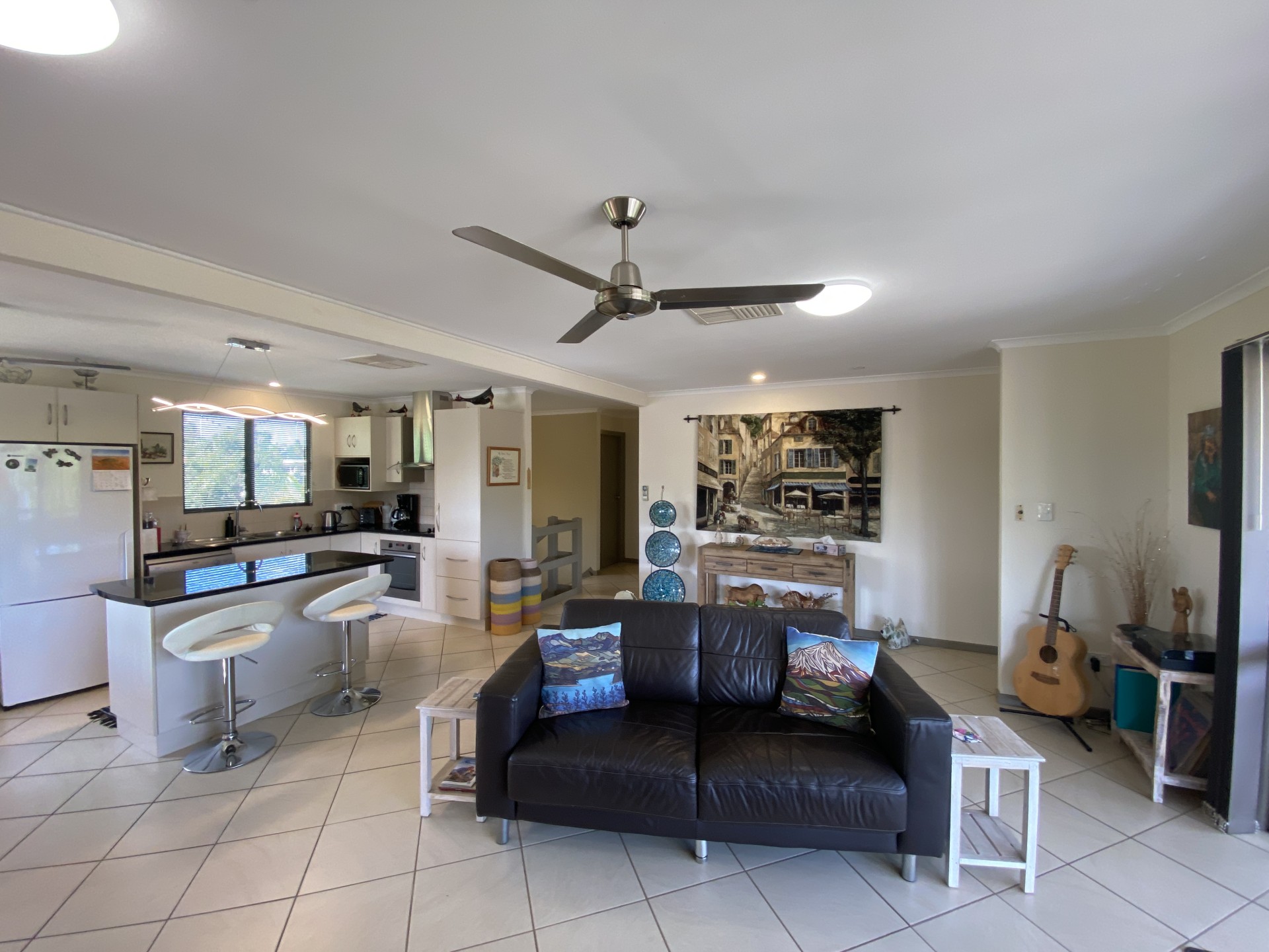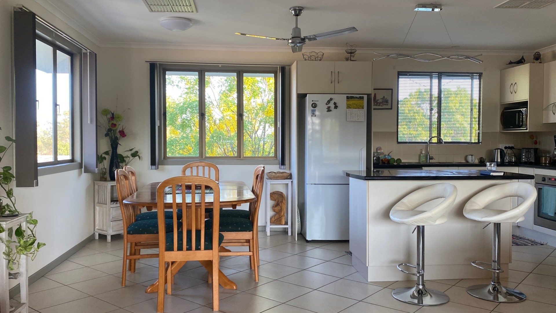 The upstairs living area is tiled and is both spacious and functional, with a pleasant outlook from every window.