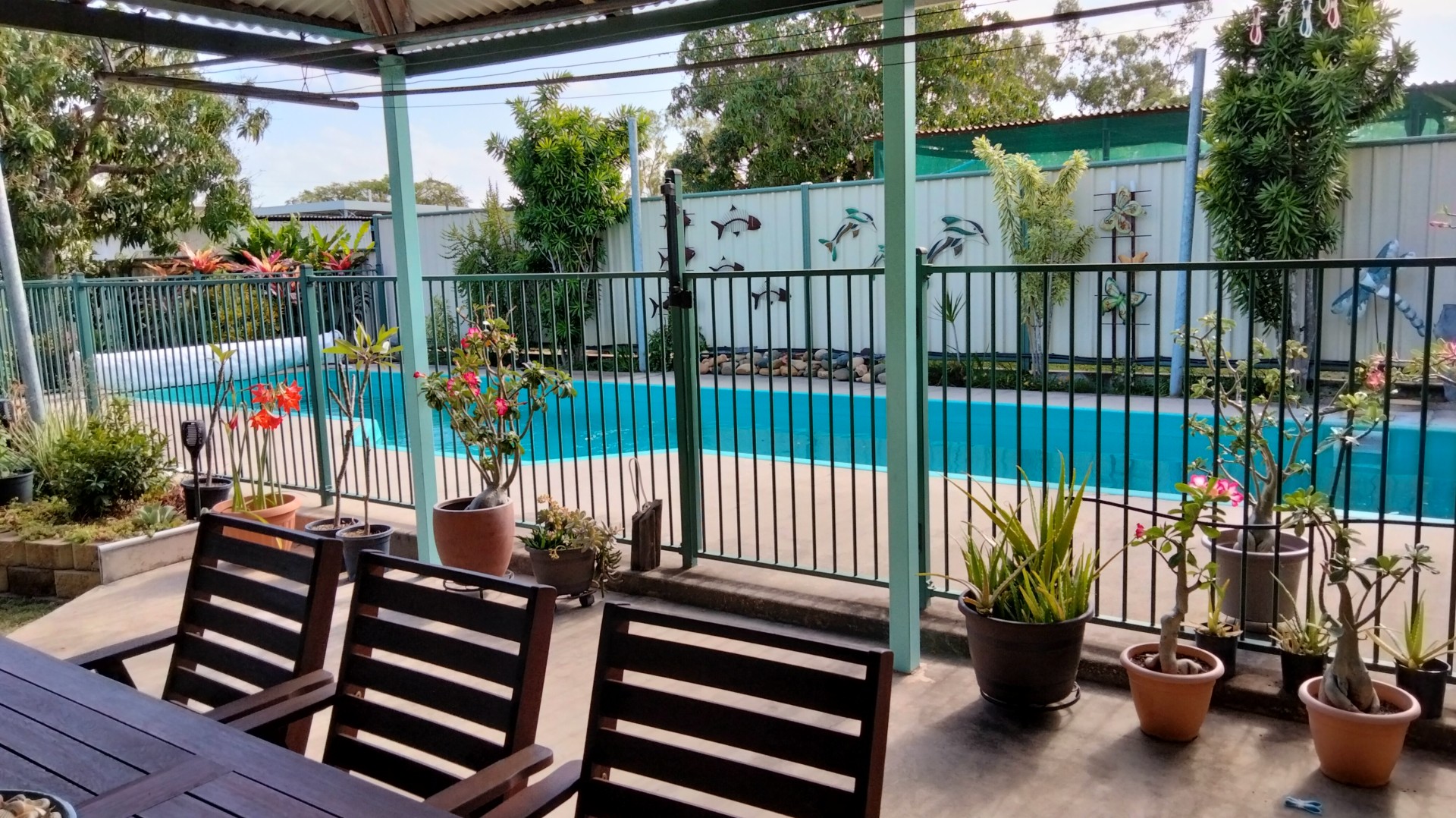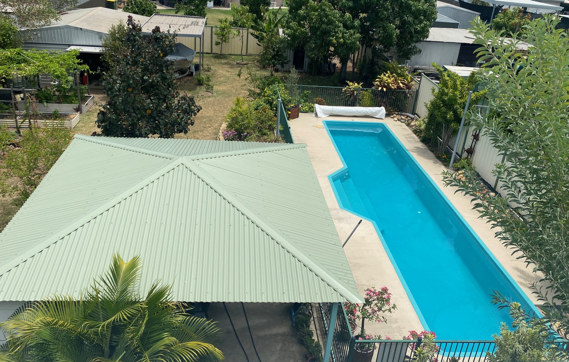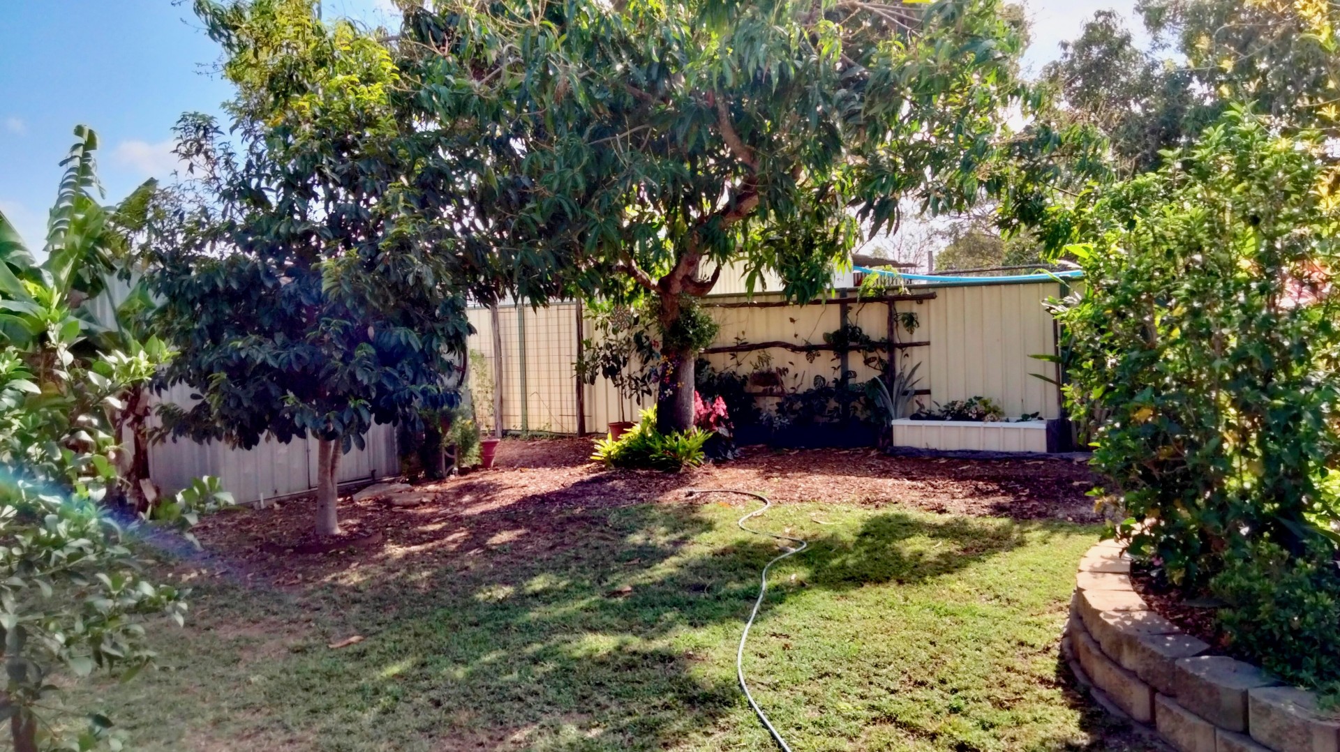 Further at the rear are the raised garden beds, 6x6 metre workshop, pump shed and mature trees. Fruit trees include: mango, soursop, lemon, orange, dragonfruit, Saba nut, mulberry, bananas, pomegranate and loquat.