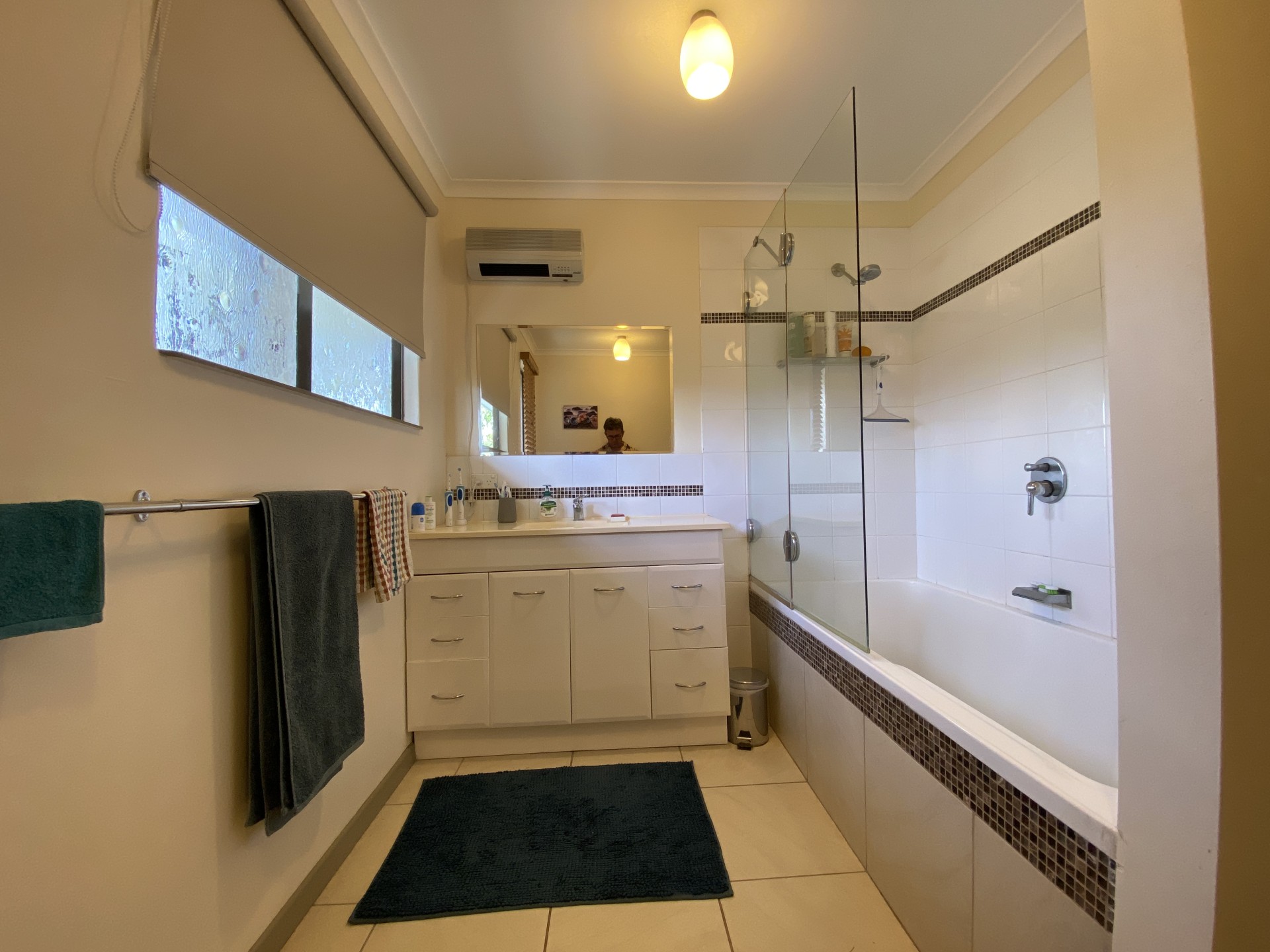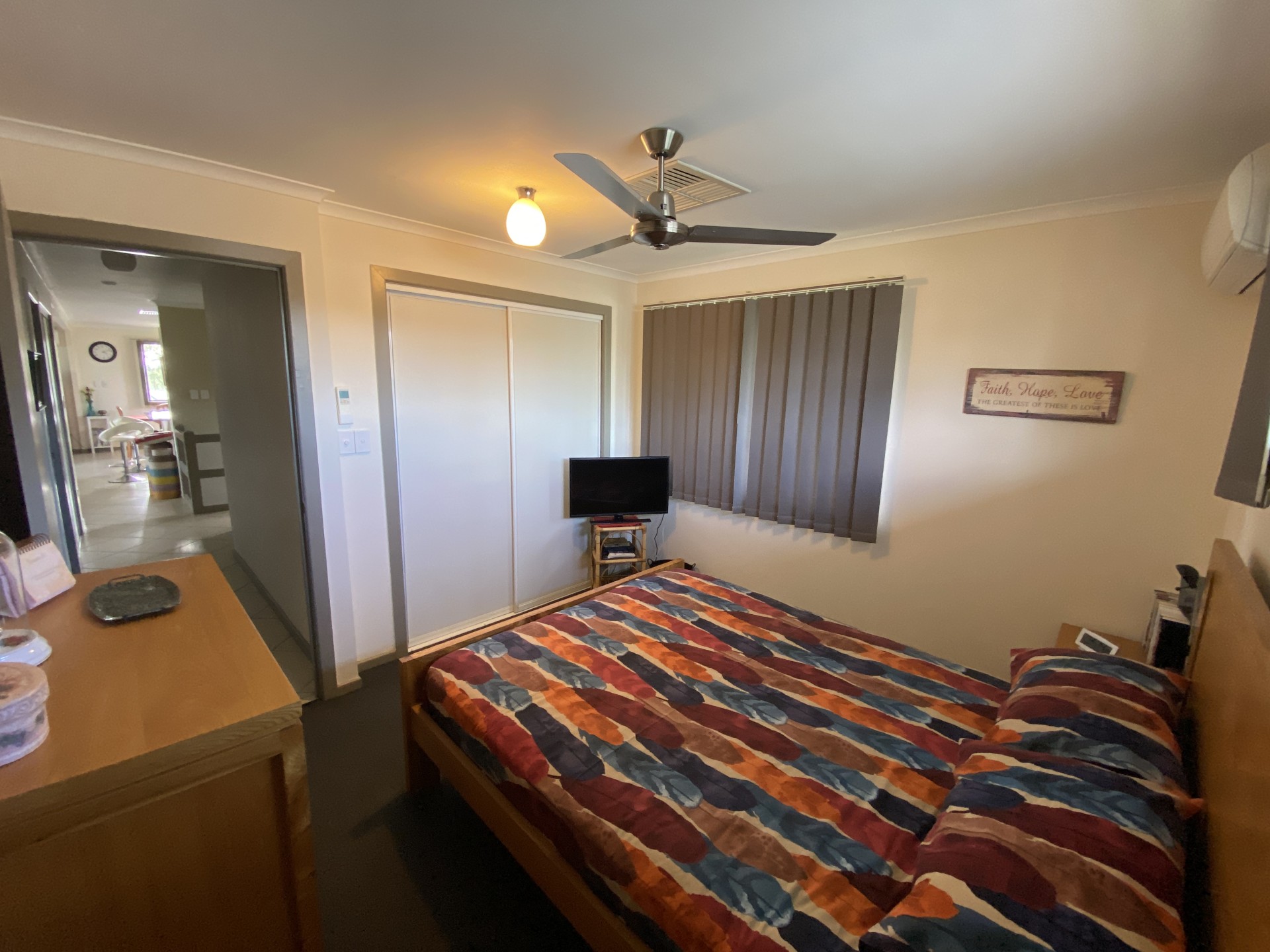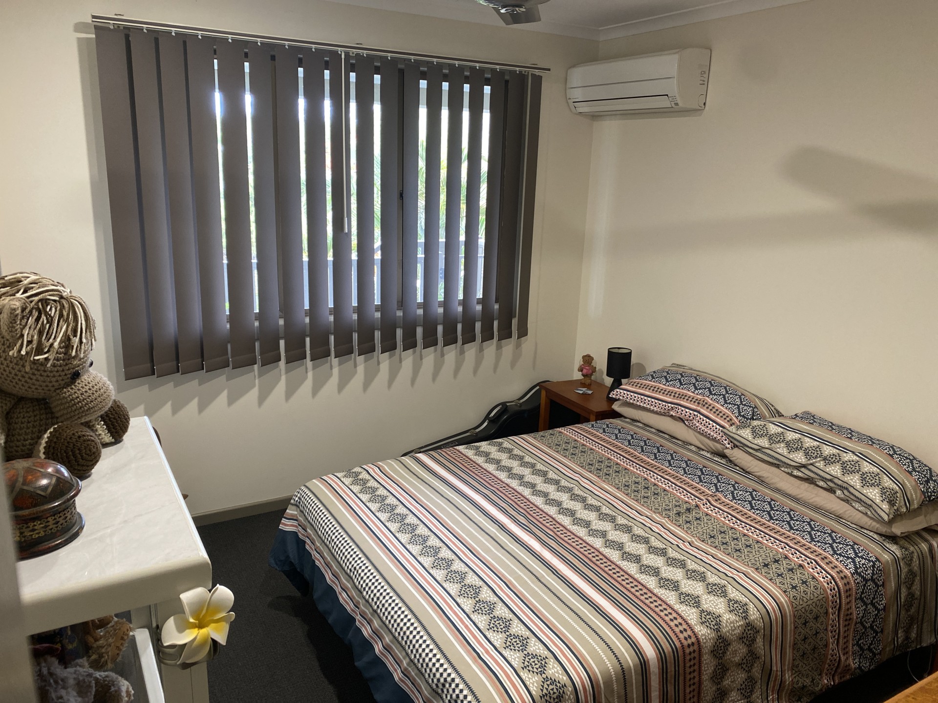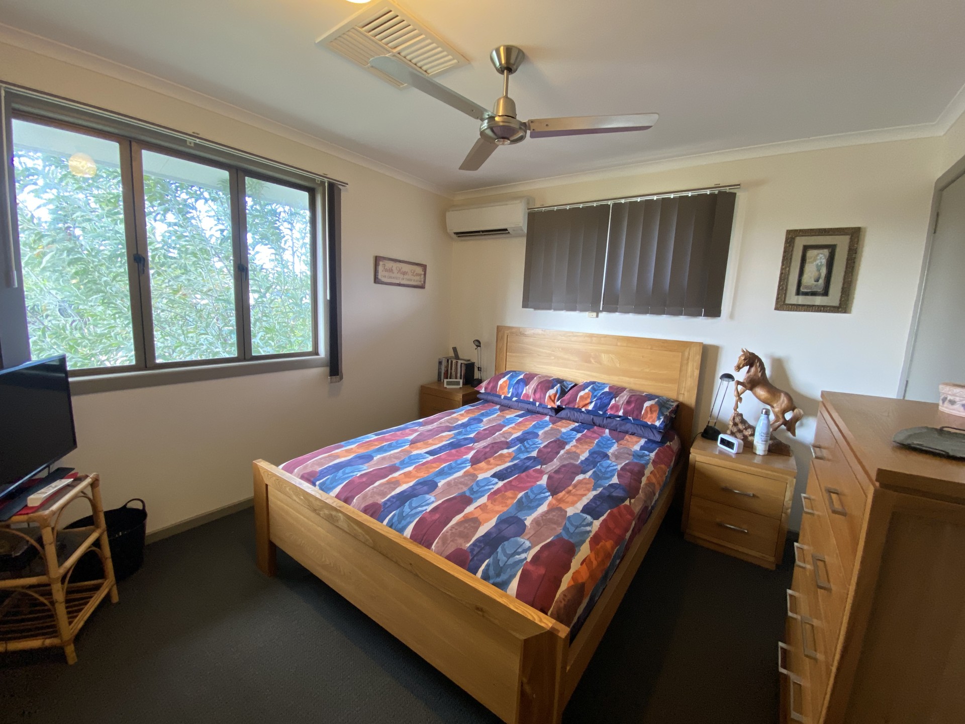 Split system air cons in the upstairs living area and the 4 bedrooms