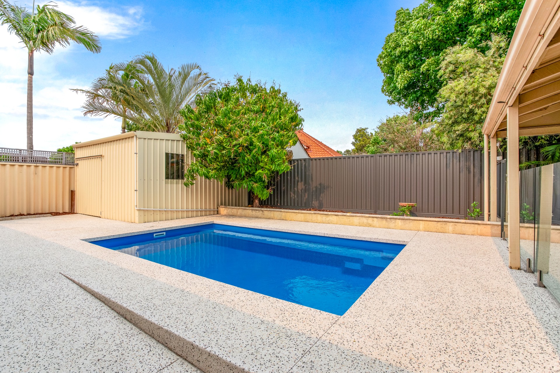 A 4.6m x 4.6m powered shed houses the pool equipment/pump, with plenty of extra space for storage, a home gym or workshop.