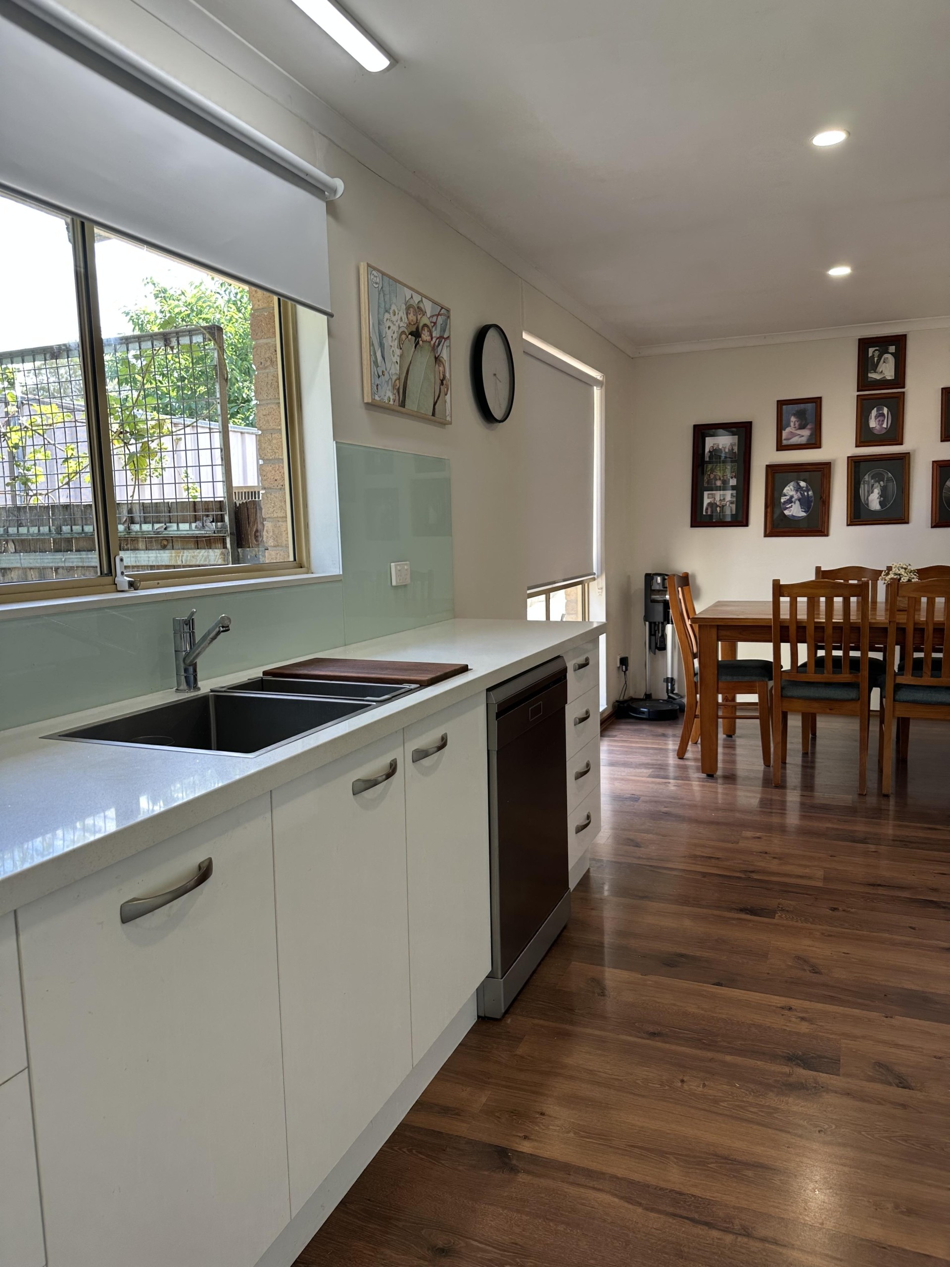 Hidden in this quiet cul-de-sac you step inside to find a beautifully modernised interior featuring a renovated kitchen and bathrooms that set the tone for contemporary living. The custom built kitchen features stone bench tops, glass splash backs, induction cooktop, electric oven, dishwasher, and a walk-in pantry area with enclosed laundry, all designed with efficiency in mind. The main bedroom boasts a well appointed ensuite and walk-in robe. The three remaining bedrooms feature built-in robes for ample storage. The living area affords a view into the private courtyard where the strelitzia blooms attract honey eaters.