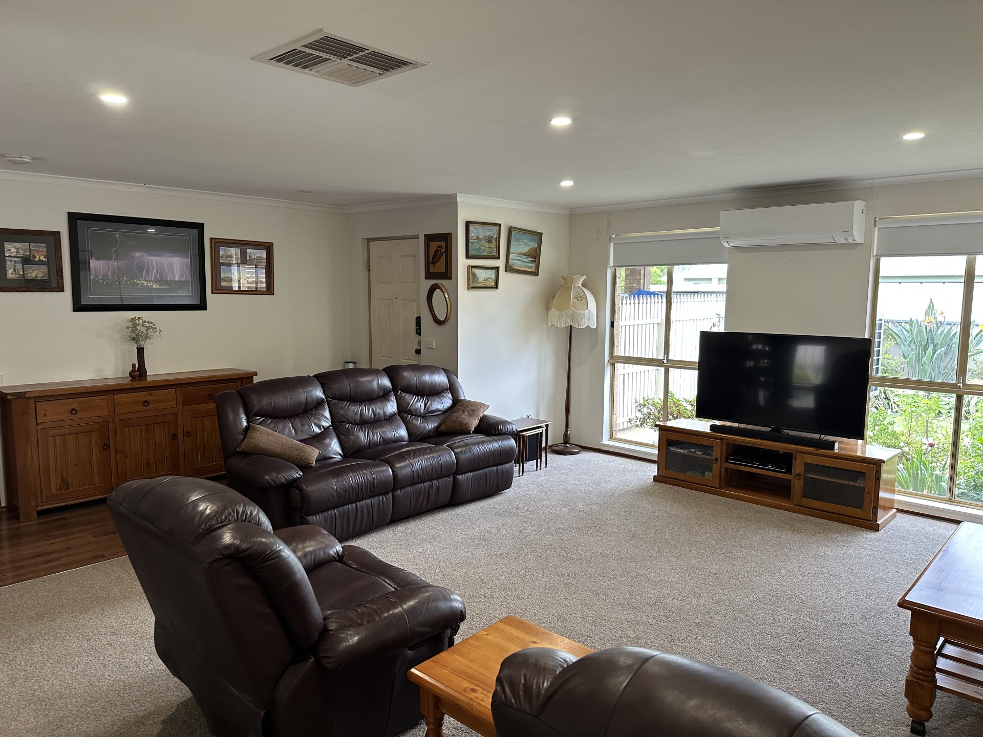 Energy-efficient living is assured with solar panels, ducted evaporative air conditioning, and a reverse-cycle unit in the living area. The home also features a slimline 3,000L water tank and multiple storage sheds. There is extra parking for a car, boat, and trailer on the south side of the house. The back yard can be conveniently accessed by vehicle via' the carport, courtyard and patio.