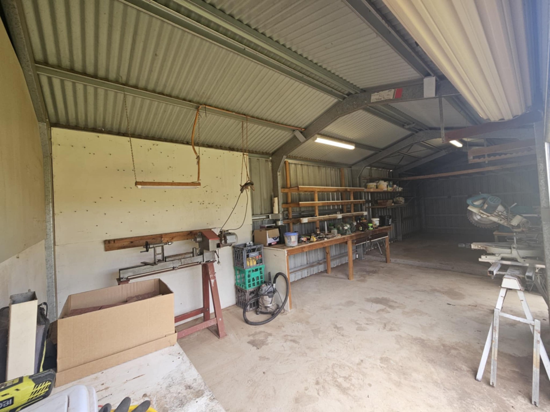 · Powered shed - 11x5 m (55m2). Built-in work bench