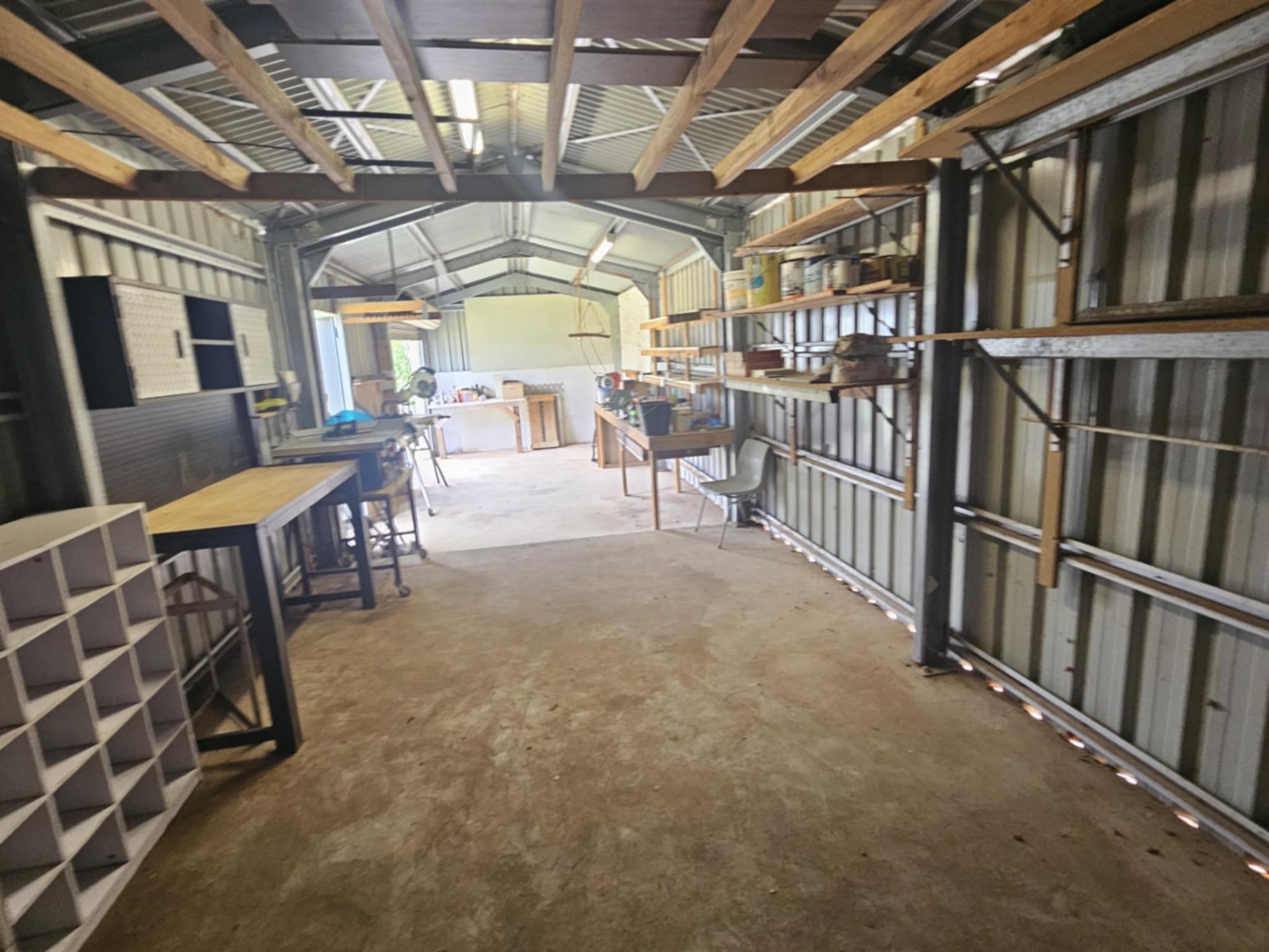 The outdoor spaces are equally impressive, with an expansive patio overlooking a serene fern garden-perfect for entertaining or unwinding. The property shines with its established vegetable gardens, complete with reticulation and bird netting, plus a hothouse for year-round cultivation. A powered 55m² shed with a built-in workbench and additional storage options caters to hobbyists and tradespeople alike.