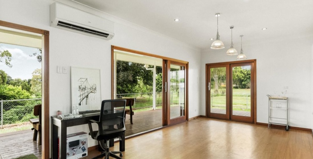 Six (6) glass panel sliding doors take up most of the back wall of the home which provides spectacular views of the Brisbane River, the expanse of green trees, birds, parrots and wildlife, which leads directly onto the back deck A tranquil and private property. Freshly painted inside and out. Extra large air-conditioner and ceiling fans.