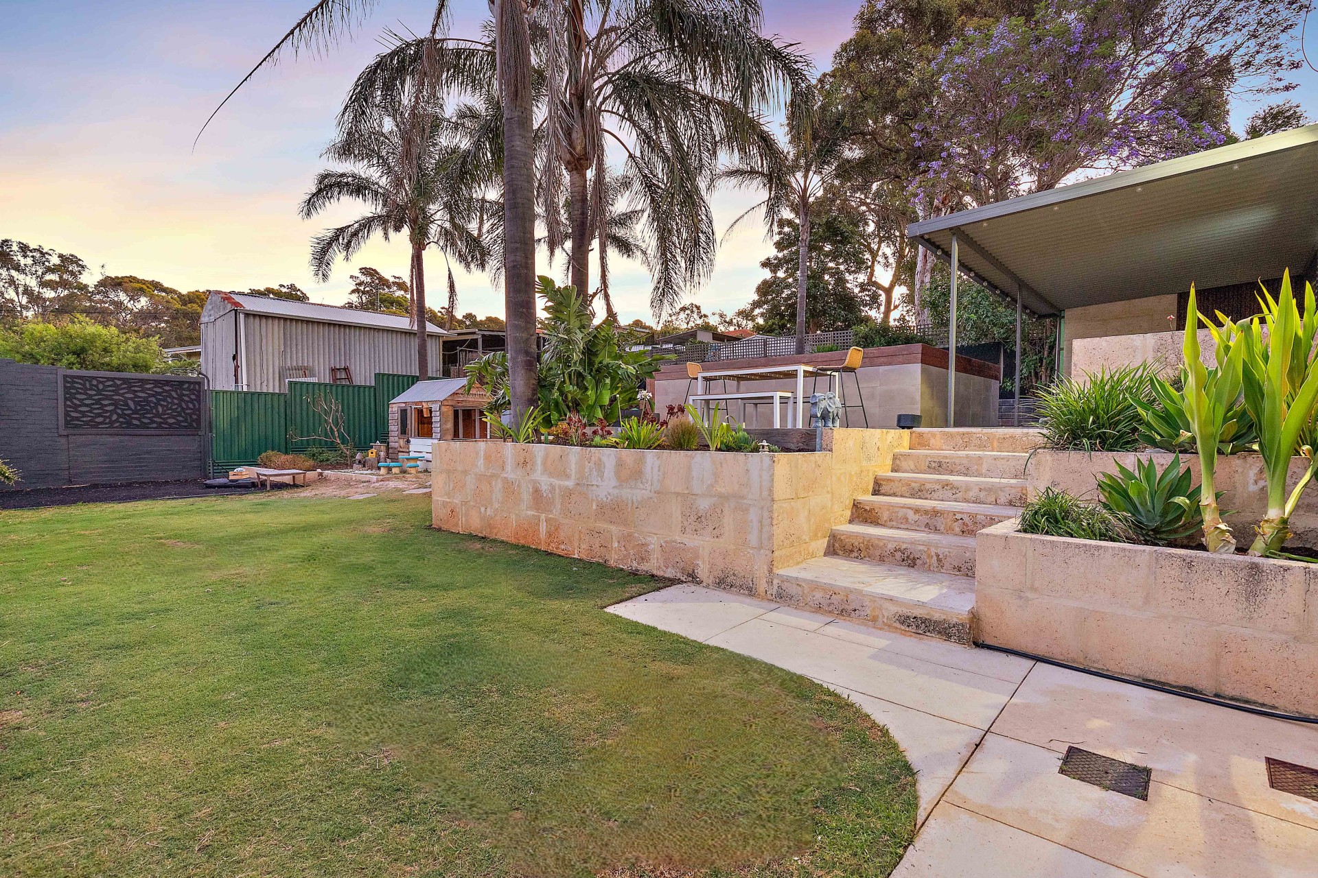 - Concreted pad added to the outdoor side patio in preparation for potential addition to the home, or to create a games room, yoga or art studio, or design to your own personal needs.
