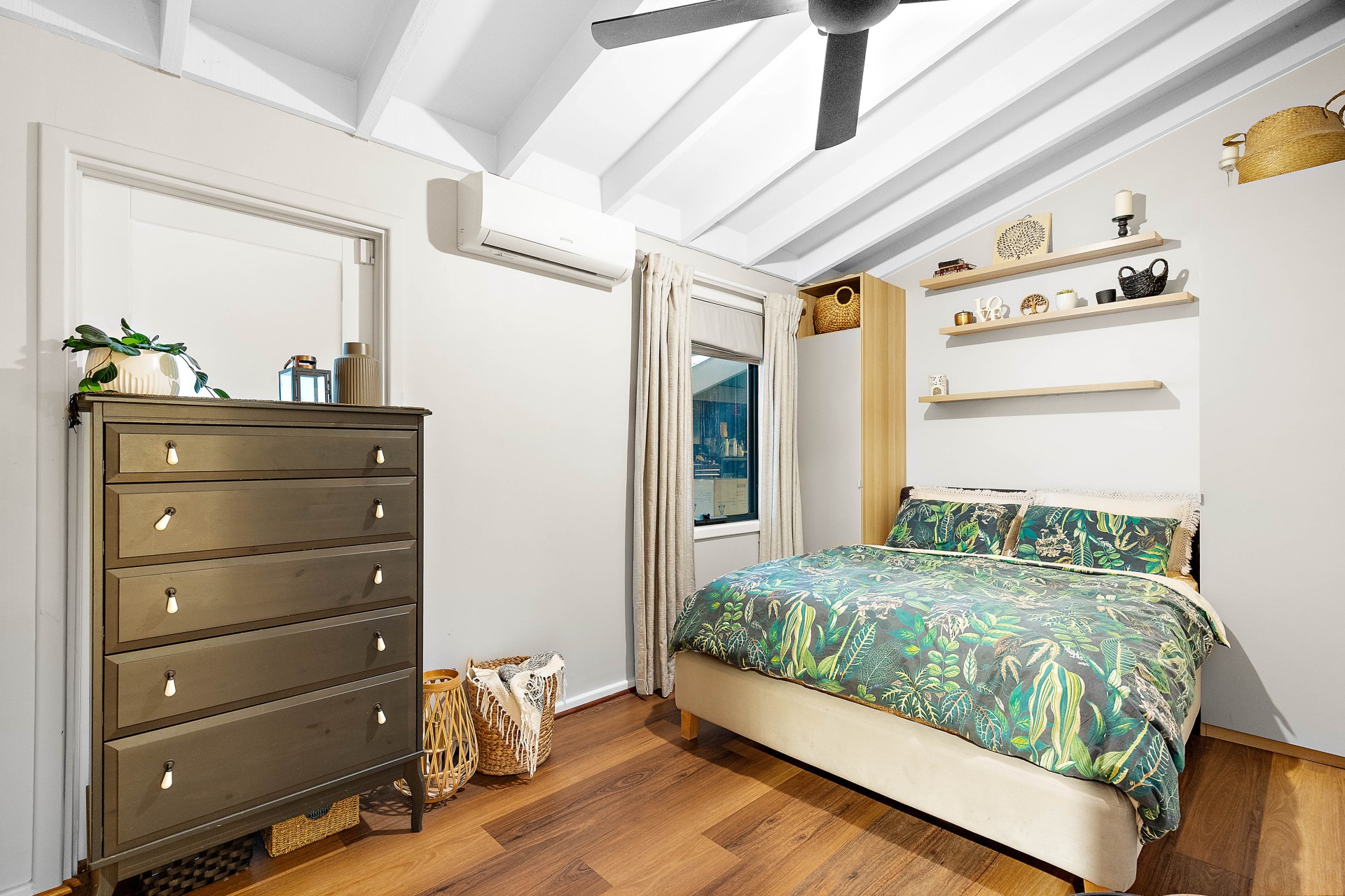 - Newly installed reverse-cycle air-conditioners in the office, master, and bedroom 2... so that one can cool the area with speed. Room 3 keeps a moderate temperature and is fitted with a ceiling fan.