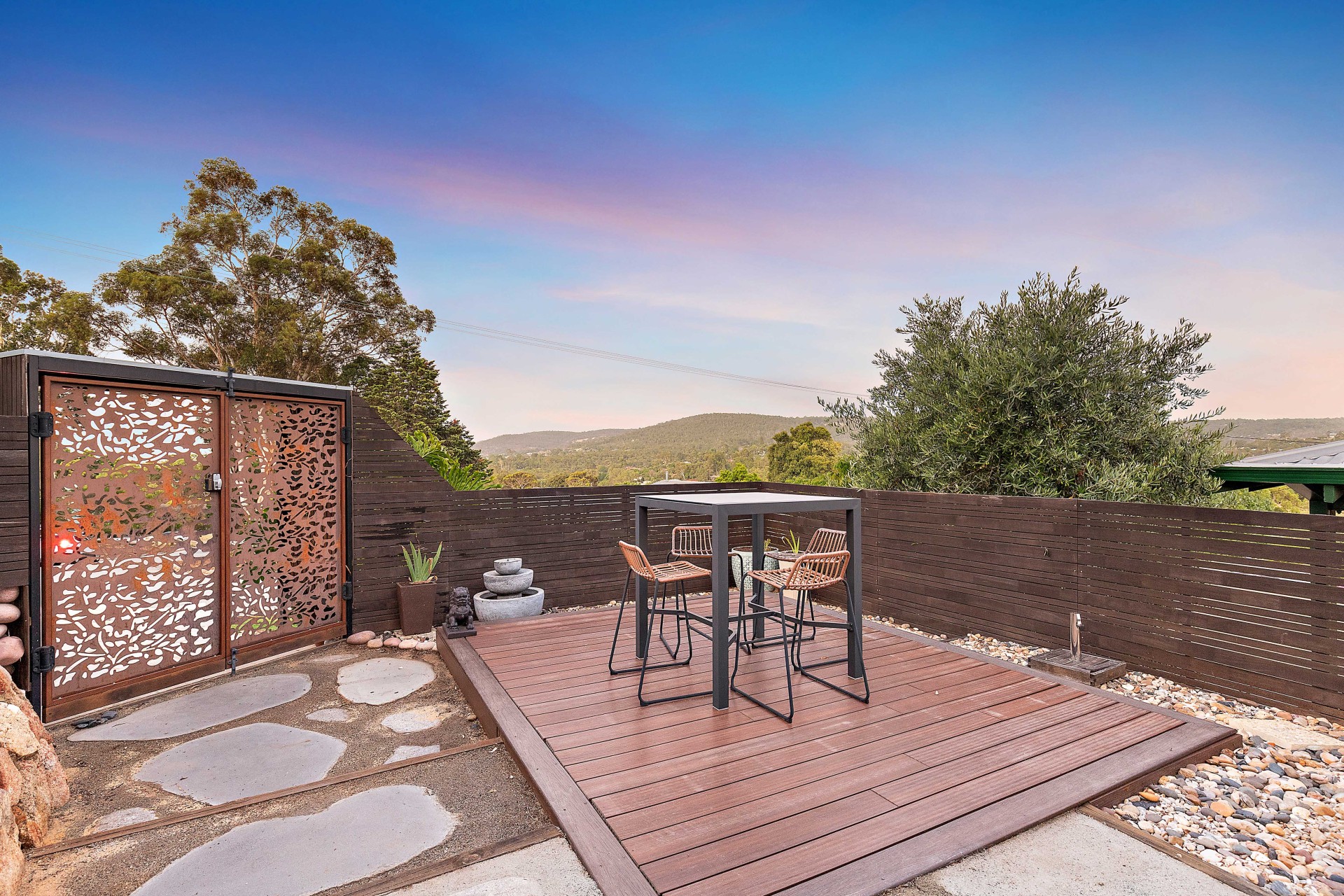 You'll fall in love as you enter through the secure gated arbour into a relaxing oasis; through large bi-folding cedar entry timber doors, into high-ceilings, and a stunning open plan family area professionally decorated, with warm loving tones. Entertain in the liquid limestone alfresco or take a walk out back to an expansive grassed area, then onto the cleverly designed solar-heated pool, with an integrated fence, patio (both with all required shire approvals), and Sunset Deck.