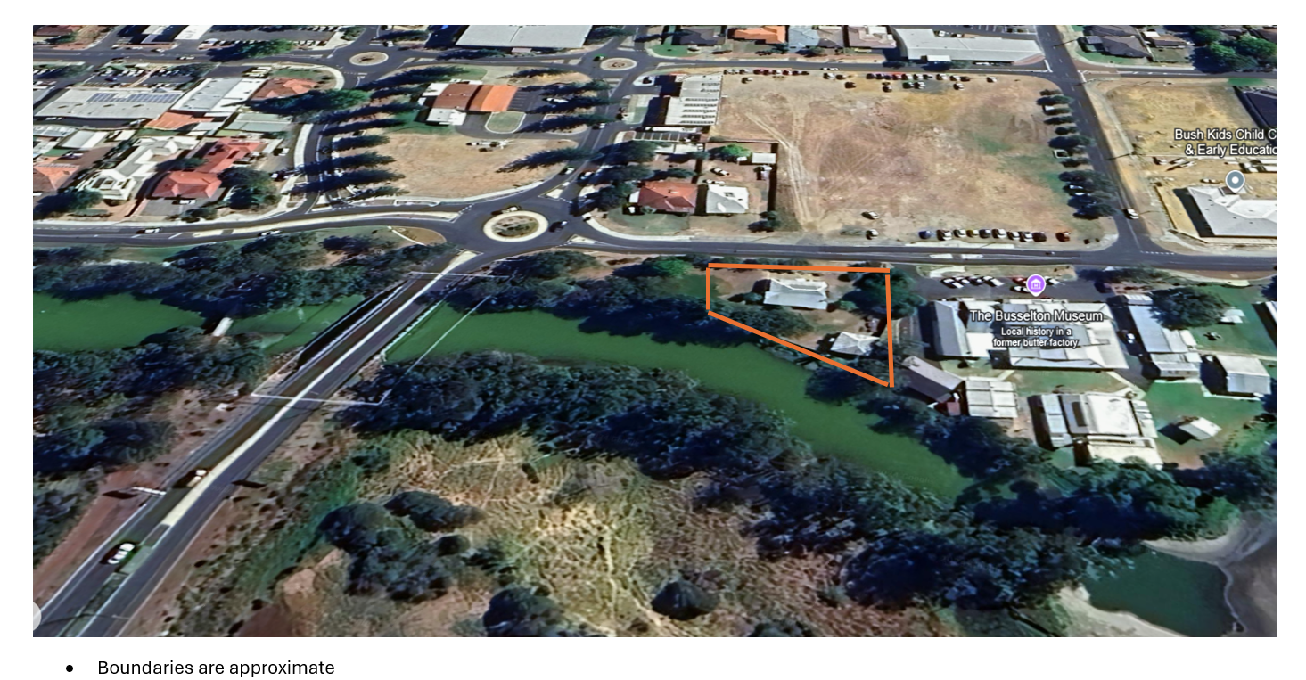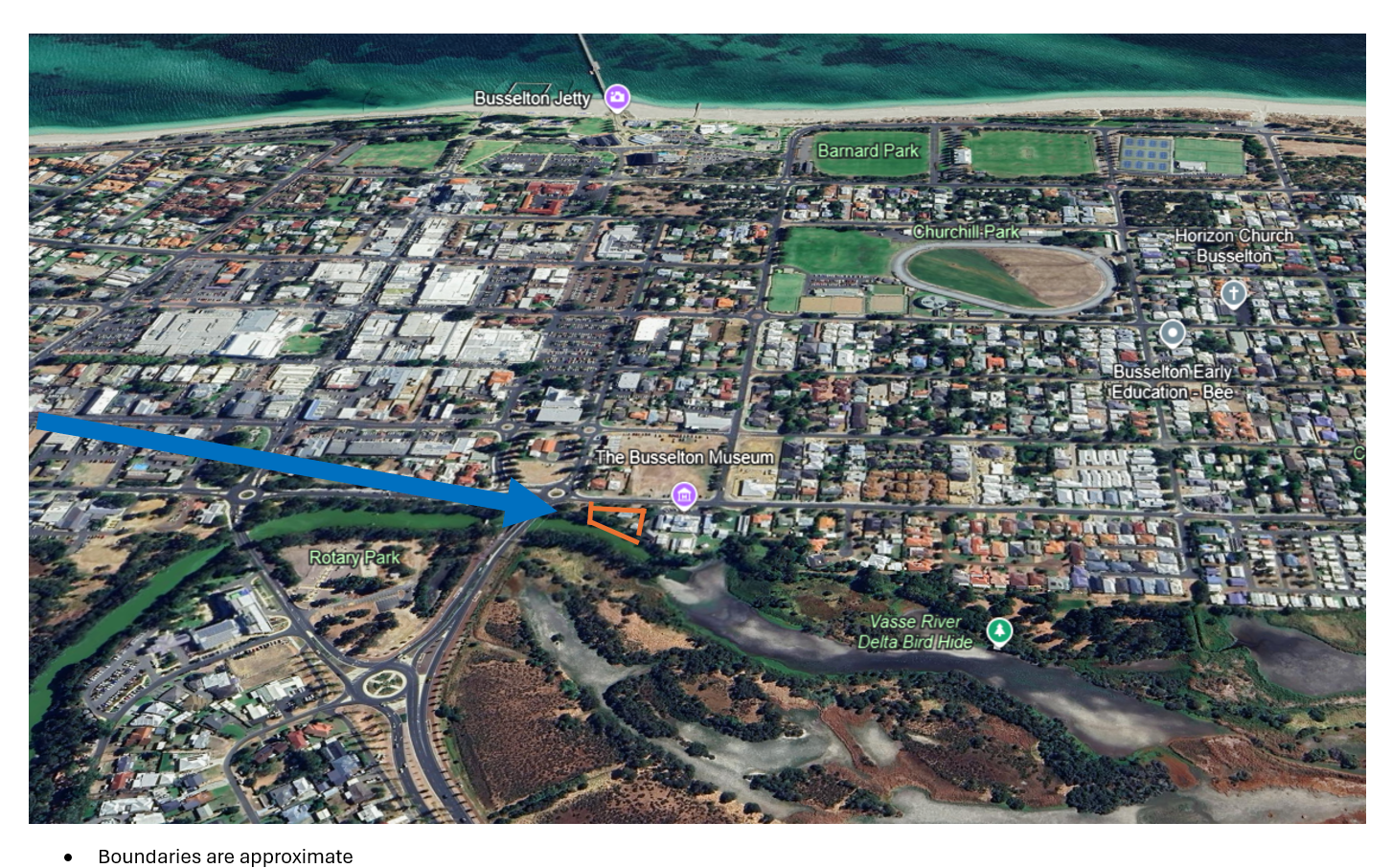 The land is bounded by the tranquil Vasse Estuary, park land and Peel Terrace. It is approximately 200m from Busselton Town main street, shops and cafes and 1,000m from Busselton Jetty.