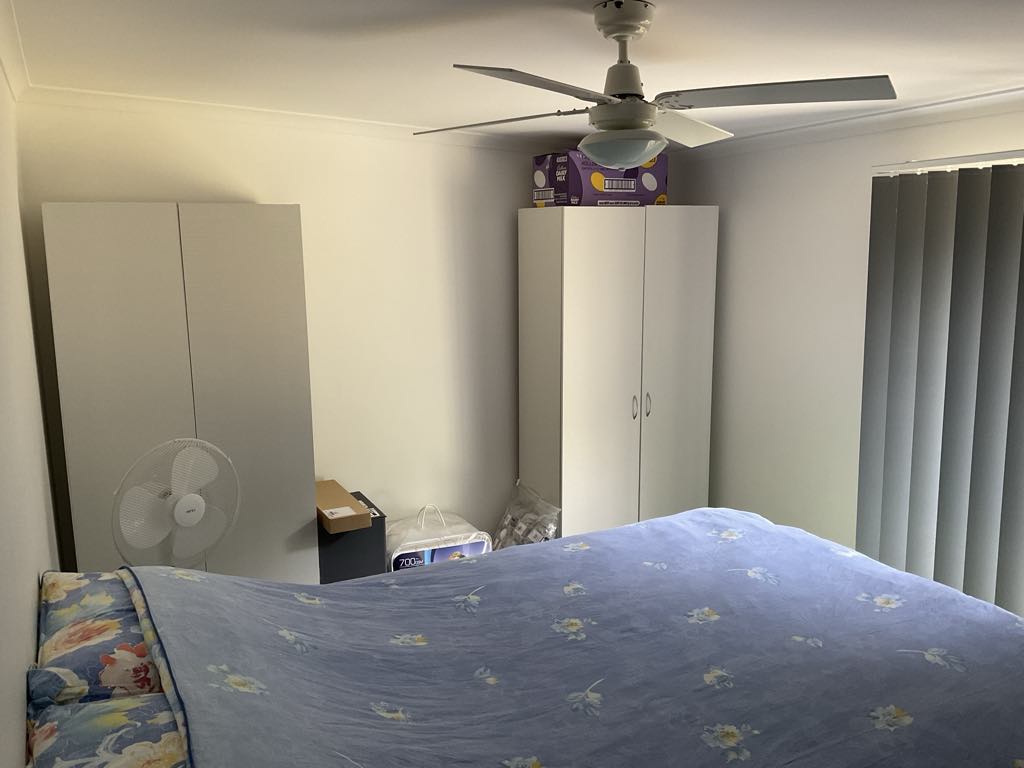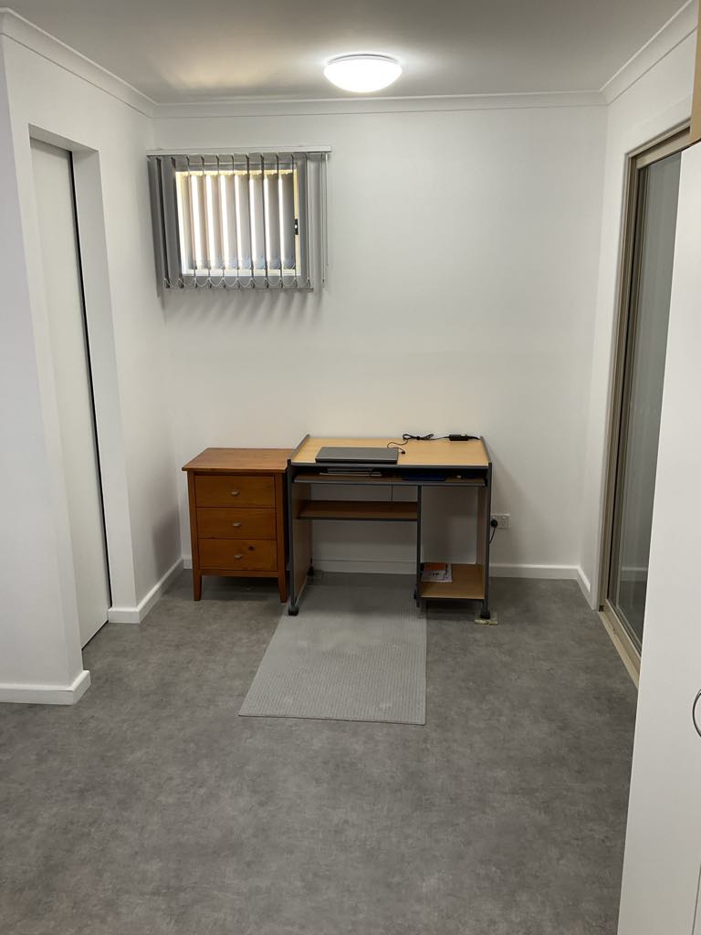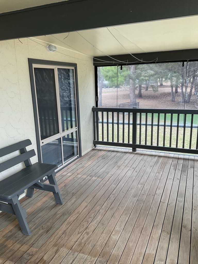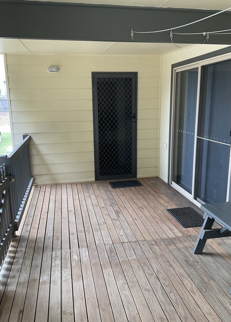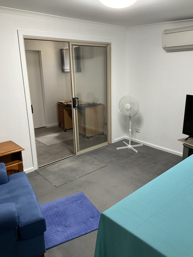 Bedroom has ceiling fan and 2 double full-length windows letting in plenty of light. Lounge room has double glass sliding door for secondary access onto deck area. Smoke alarms, outside lighting and plenty of room to park your car and create a garden if you wish.