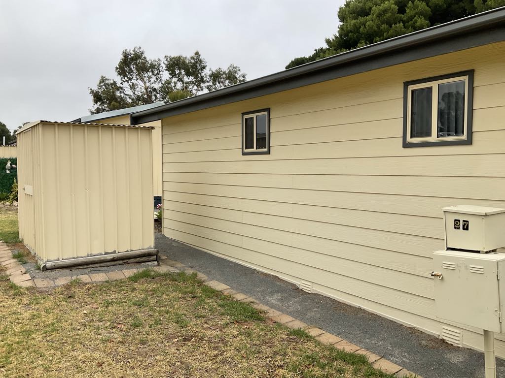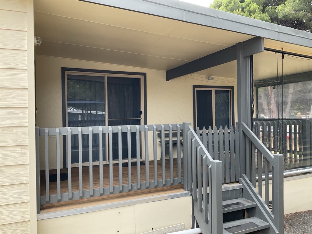 This fully-renovated, low maintenance, modern one bedroom cabin is the perfect budget living land lease setup overlooking the Hindmarsh Island Caravan Park 22 acre grounds.