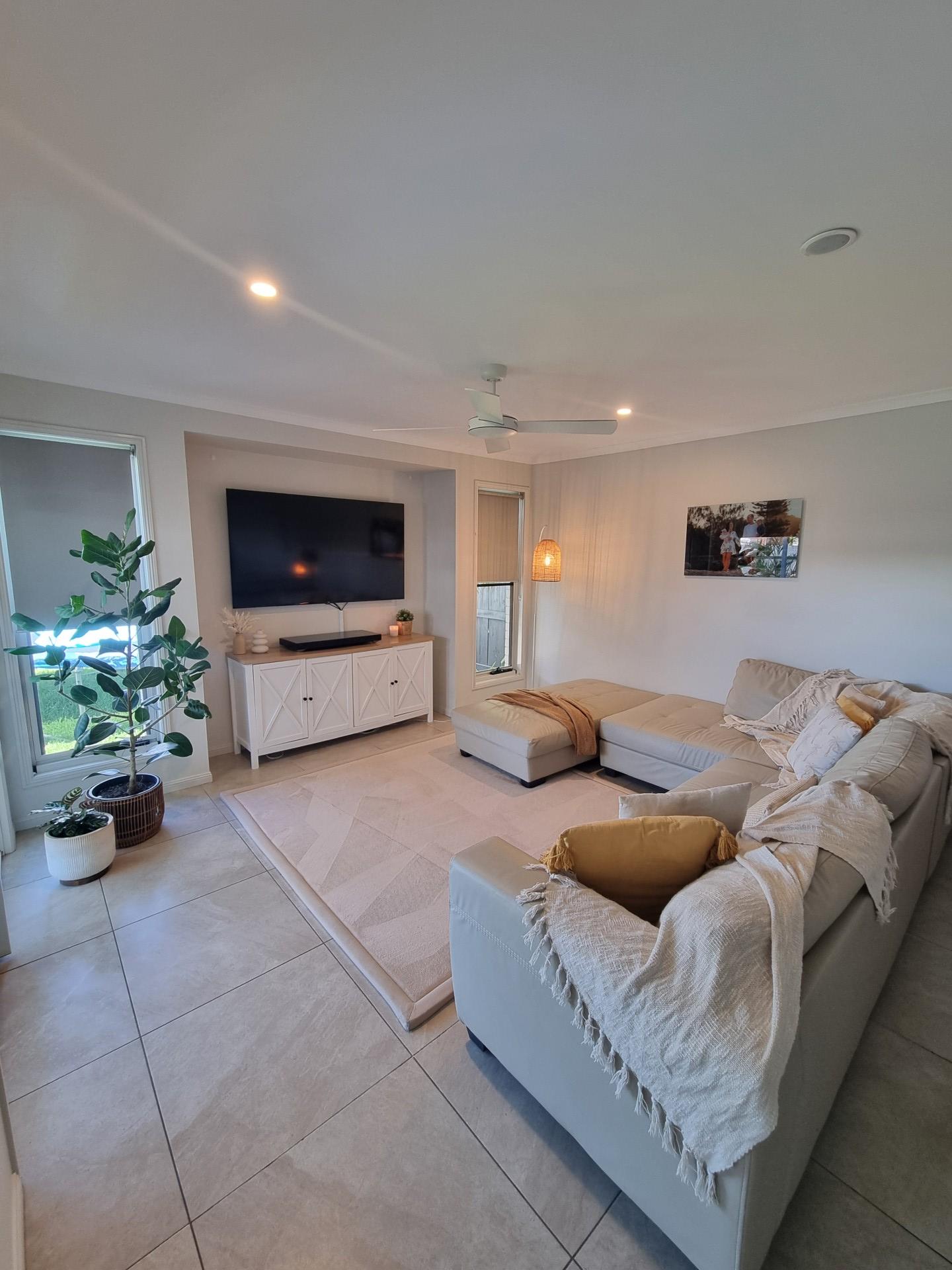 The open-plan living and dining area seamlessly blends indoor and outdoor spaces, creating a perfect flow for entertaining and enjoying the Queensland lifestyle.