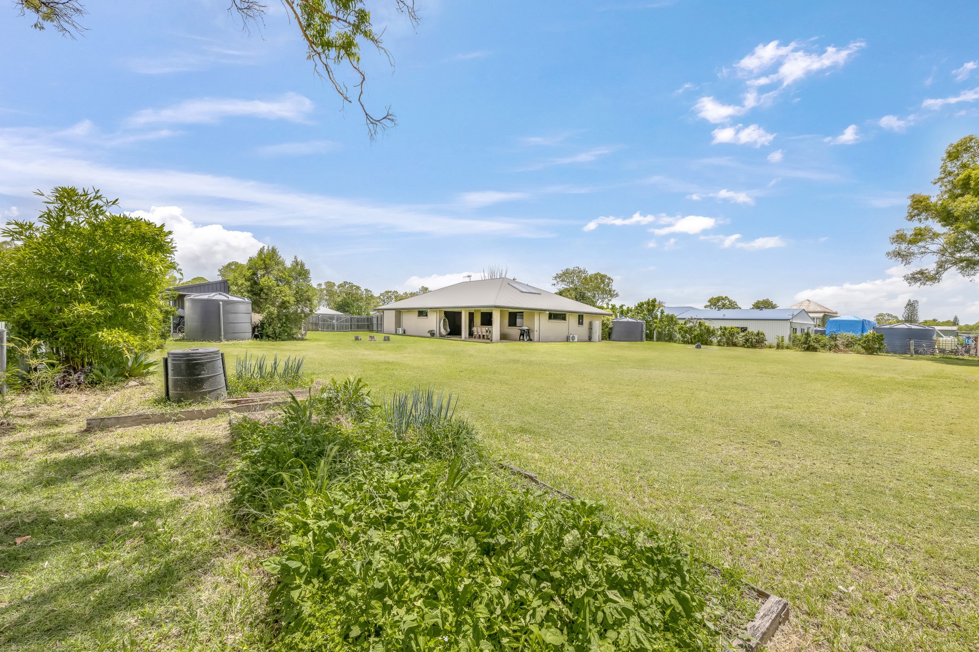• Embrace eco-friendly living with solar hot water, four large rainwater tanks plus a bore - ensuring excellent water security year round - plus an established vegetable garden, and a chicken coop - providing fresh produce, free-range eggs, and peace of mind.