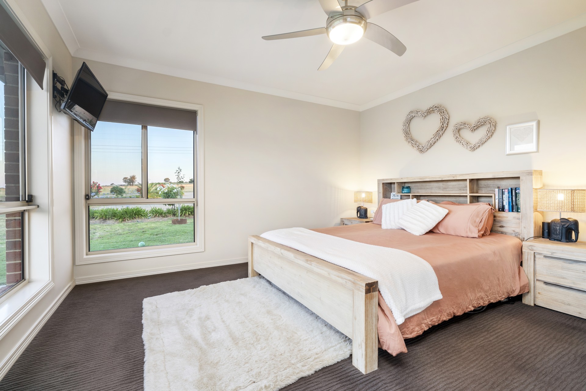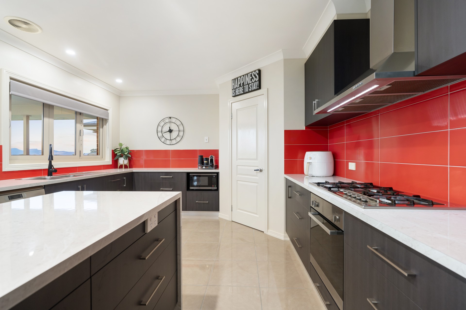Designed for the family who love to relax and entertain, the open plan living, kitchen and dining areas overlook the luscious front lawn and farming landscape, as do the master bedroom, study/bedroom and rumpus room. The large windows, glass sliding doors and high ceilings create a light filled sanctuary.