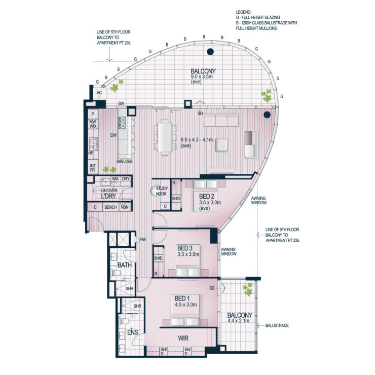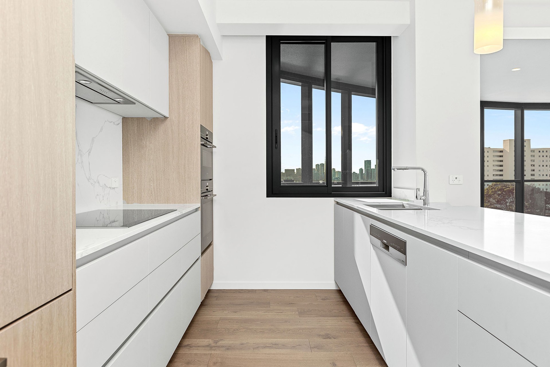 All bedrooms are east facing over looking the zoo and the large open plan living/kitchen / dining face north opening into a large covered logia over looking the city skyline.