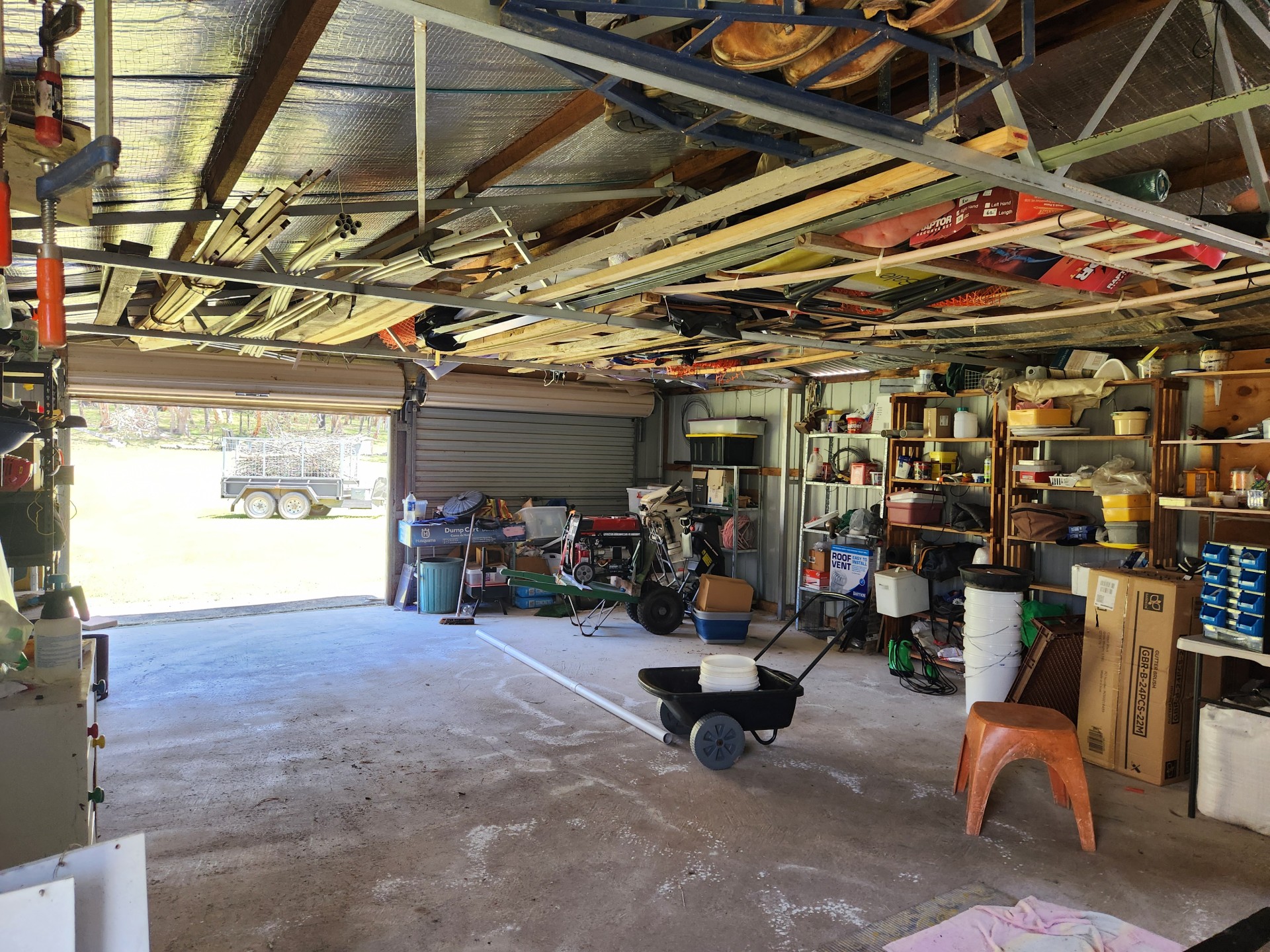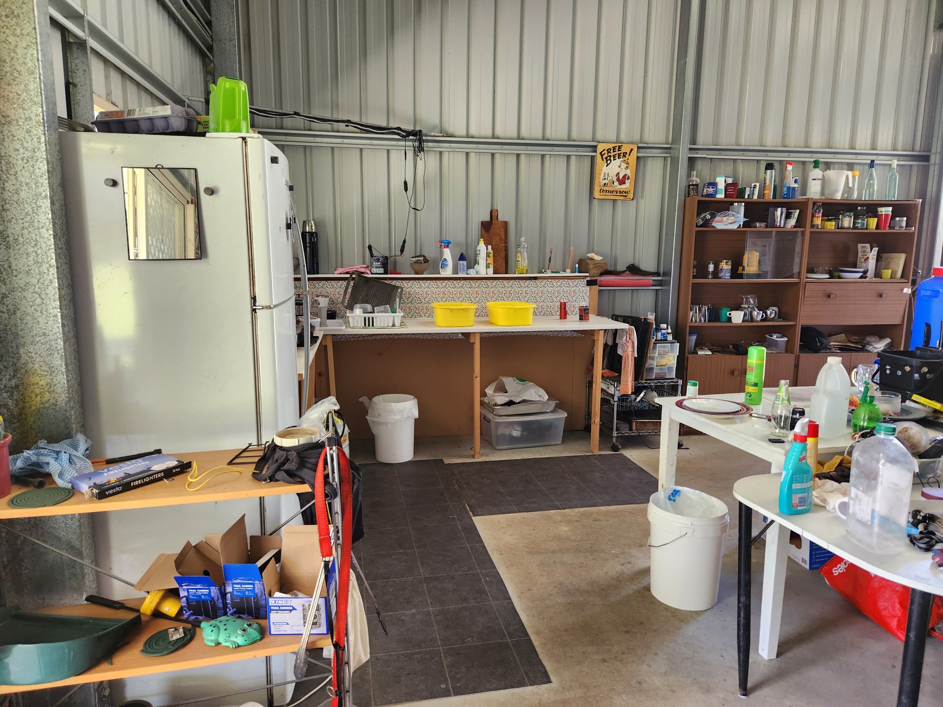 Two sheds are on the block, an older smaller shed on a concrete slab that is approximately 6 metres x 9 metres and houses a composting toilet. The larger new shed is on a concrete slab and is 9 metres x 13 metres and approximately 4.5 metres at its' highest point. It has double ended roller doors to enable a caravan to be driven in and unhitched, making it a comfortable place to sleep. This block could be used as a get-away and a welcome escape from the rat-race. The large shed has a 3 metre wide veranda where you can sit, relax and watch the sun go down with a beer or two. There are two water tanks (30,000 litre and 5,000 litre) and a dam, so water is not a problem. A lapsed bore licence also exists. This is your opportunity to develop your own off-grid weekender. All reasonable offers considered.